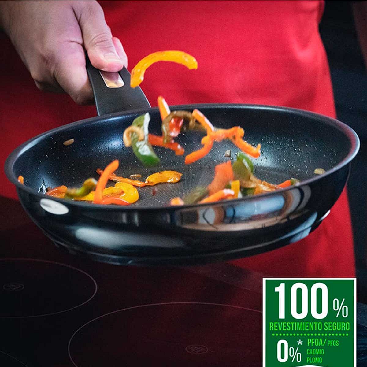 Poêle inox 28 cm avec manche amovible et système Click & Lock - Collection COMBI de LACOR
