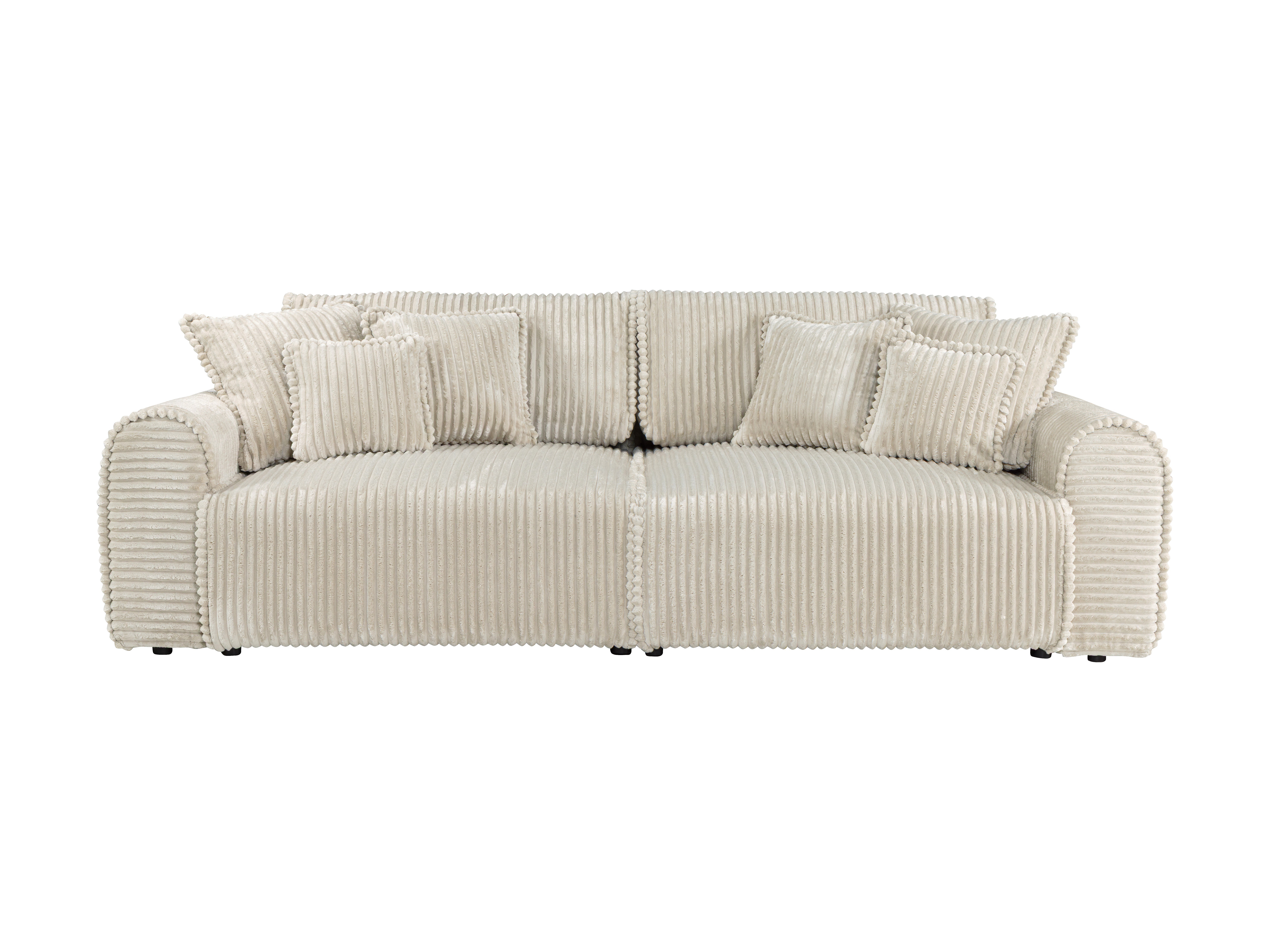 Canapé 4 places convertible confort assise profonde en velours côtelé grosses côtes beige TELARO