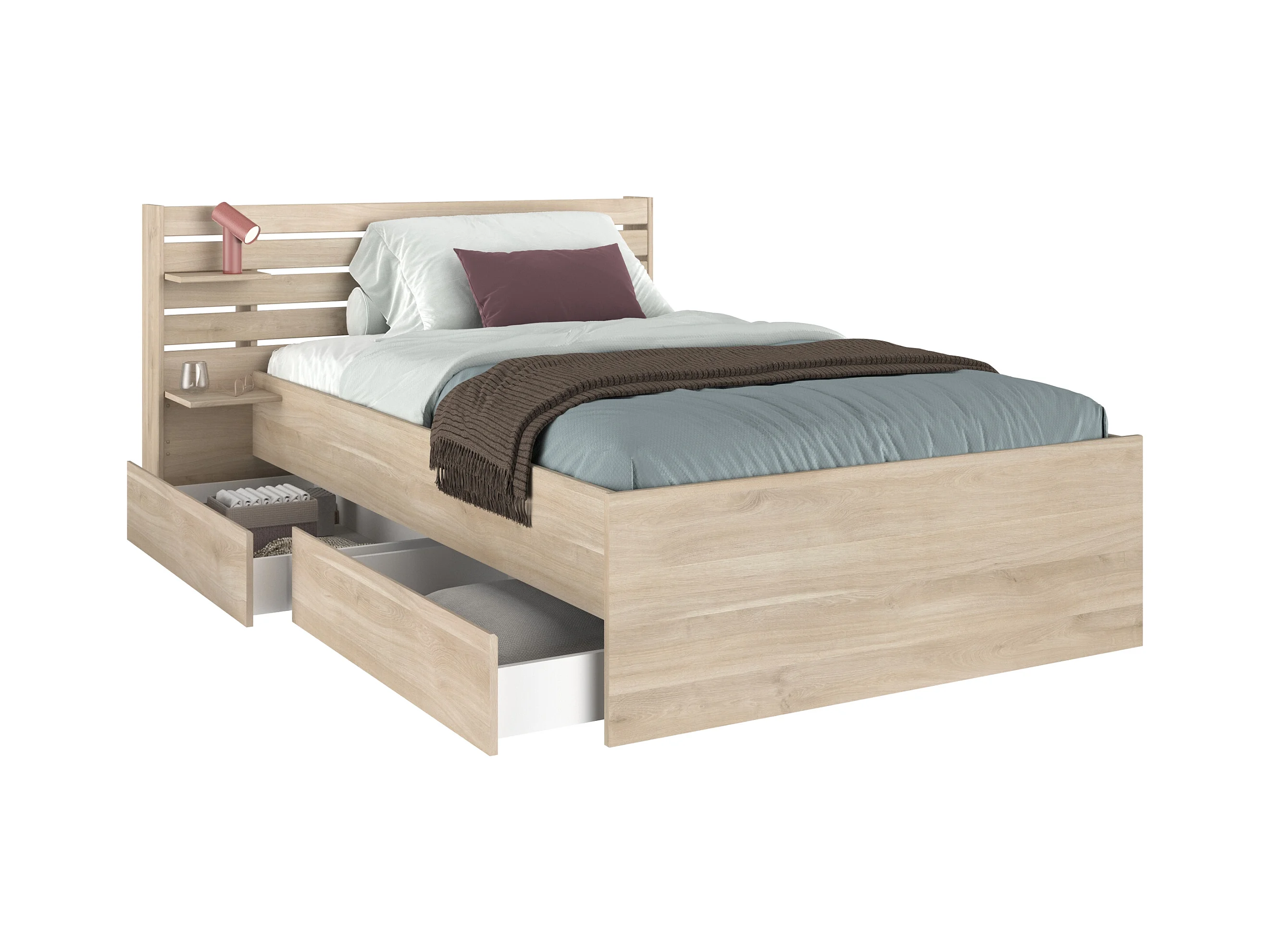 Lit 120 x 190 cm avec 4 tiroirs - Coloris : Naturel - TENALIA