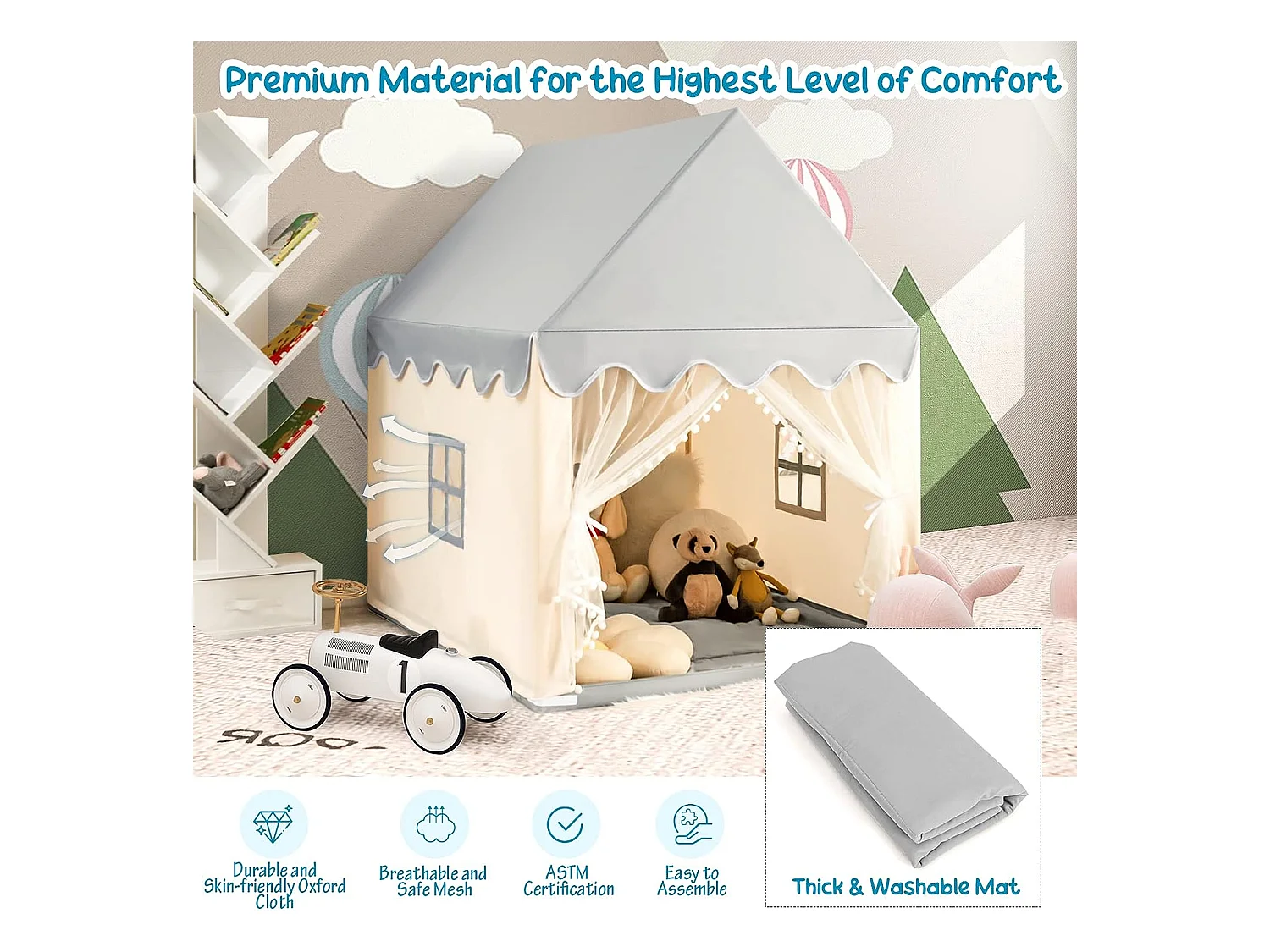 Tente de jeux pour enfants, cabane de style princesse en coton