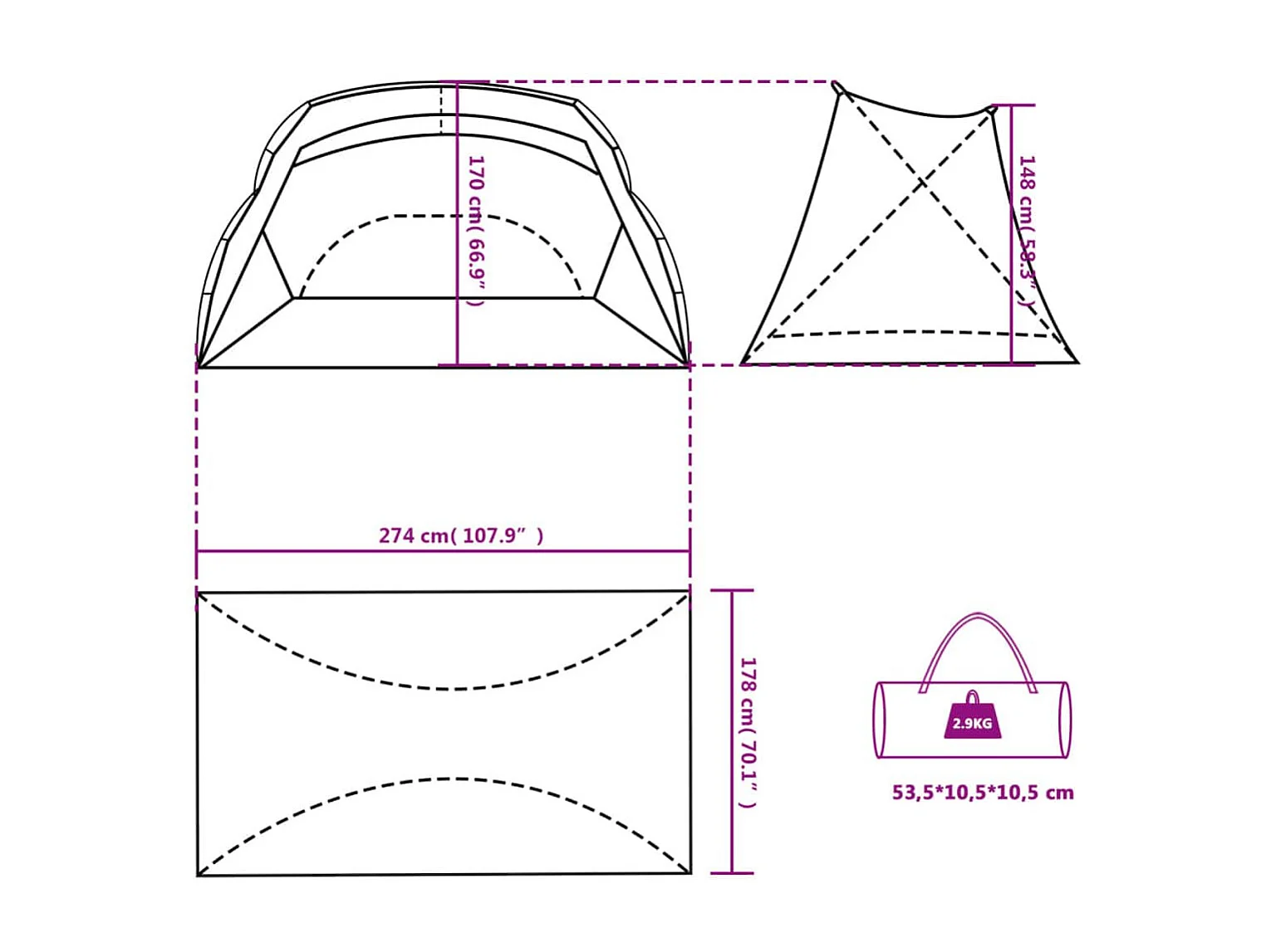 Tente de plage bleu azuré 274x178x170/148 cm 185T polyester