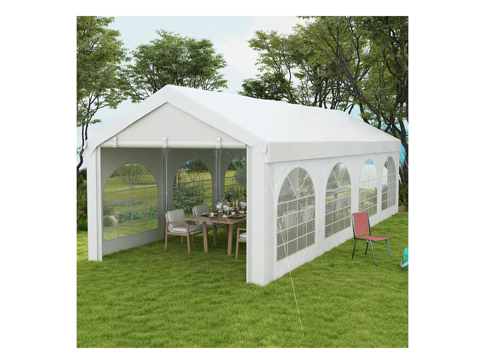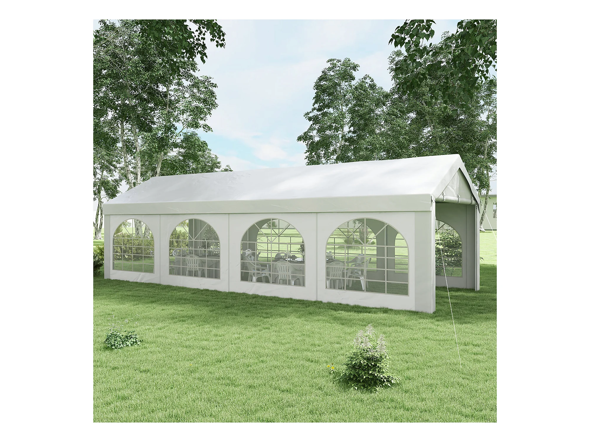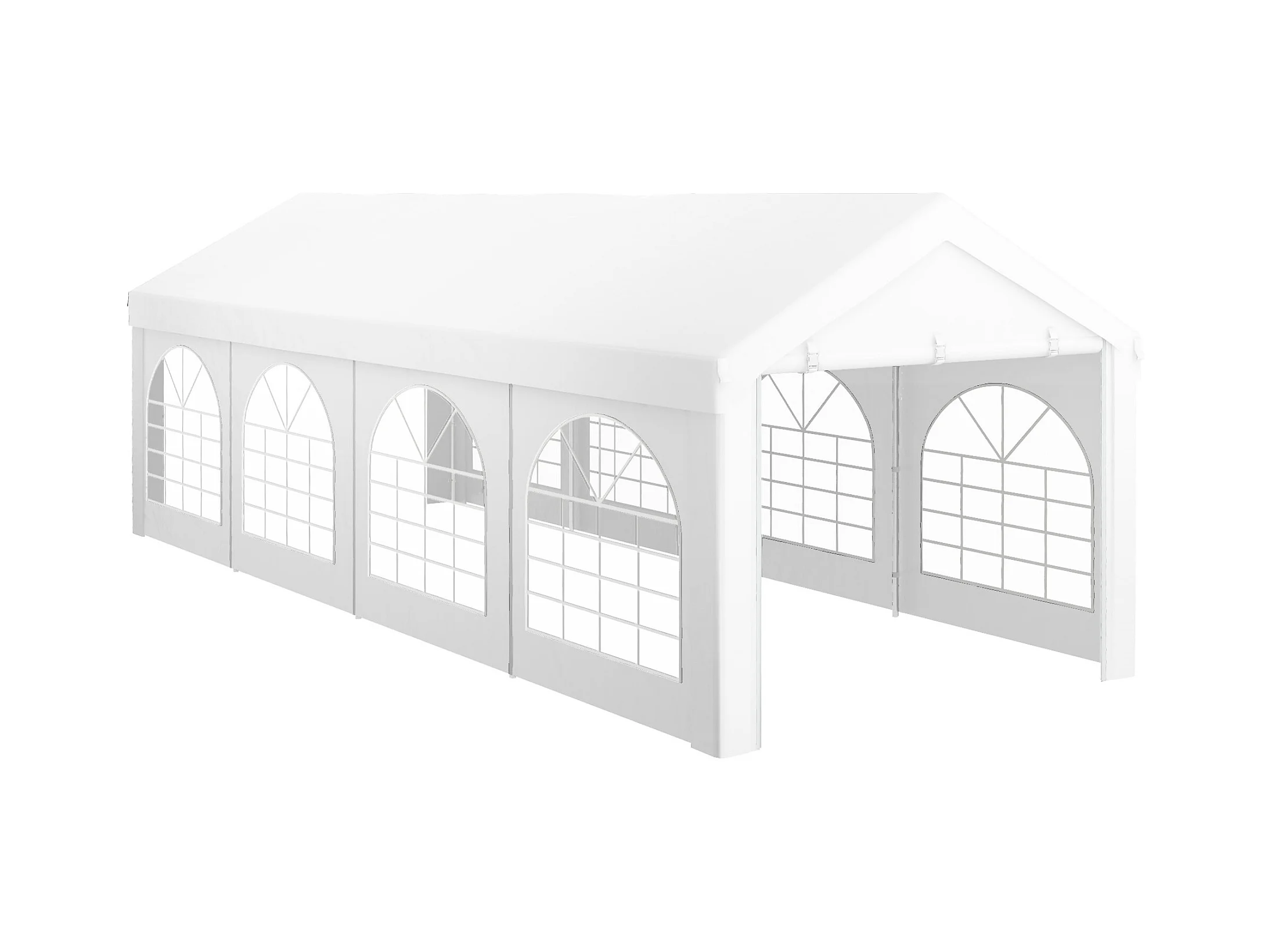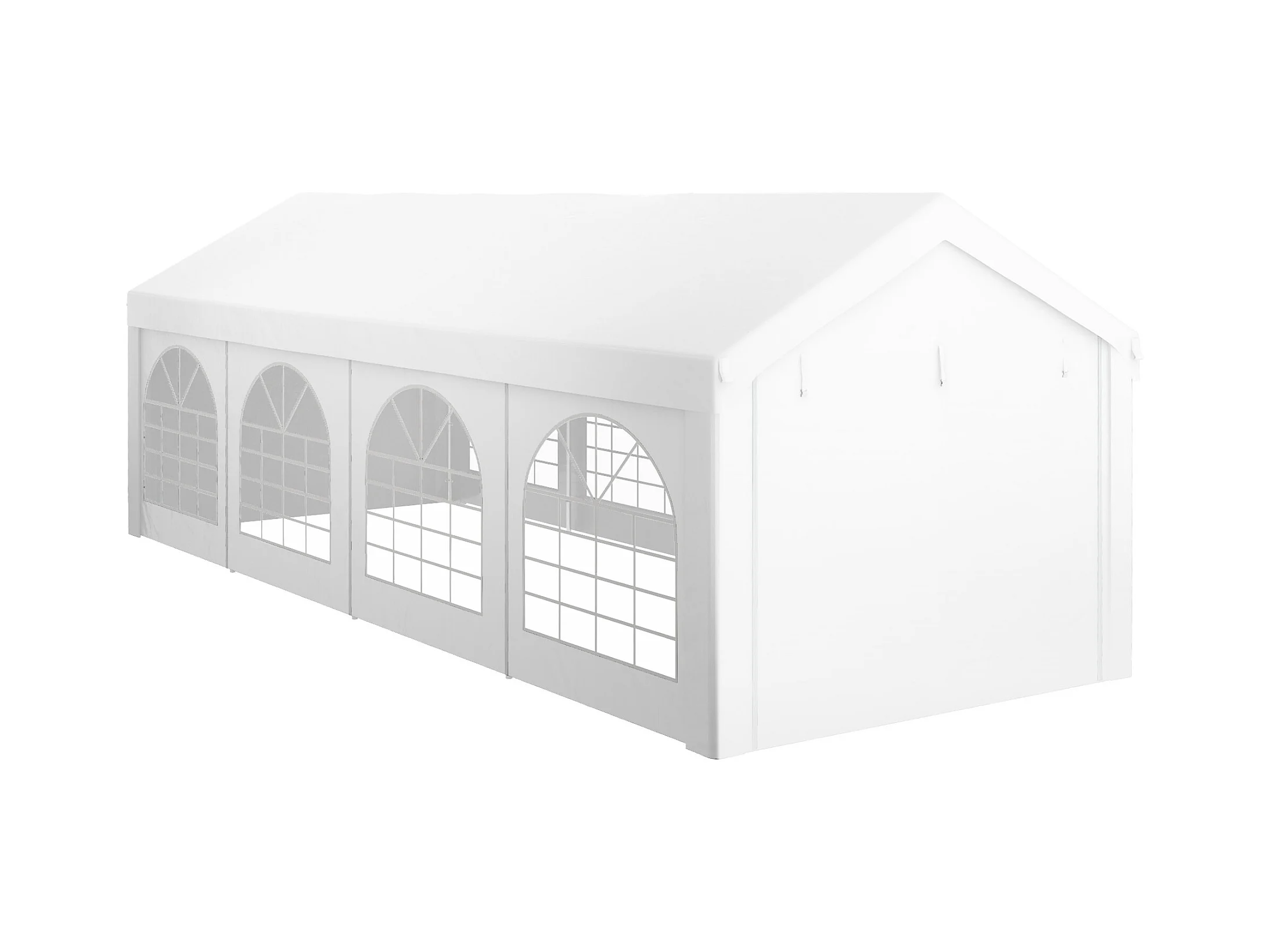 Tente de réception tonnelle barnum dim. 7,96L x 2,97l x 2,85H m 2 portes zippées acier galvanisé PE blanc