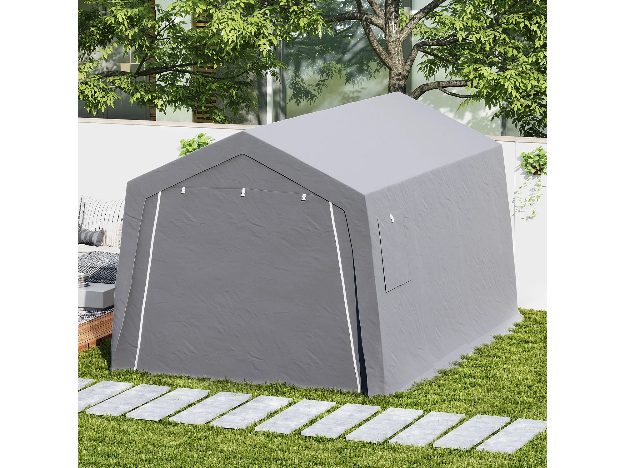 Tente de stockage - abri de jardin - tente de rangement dim. 3 x 4,5 x 2,5 m - métal galvanisé PE gris