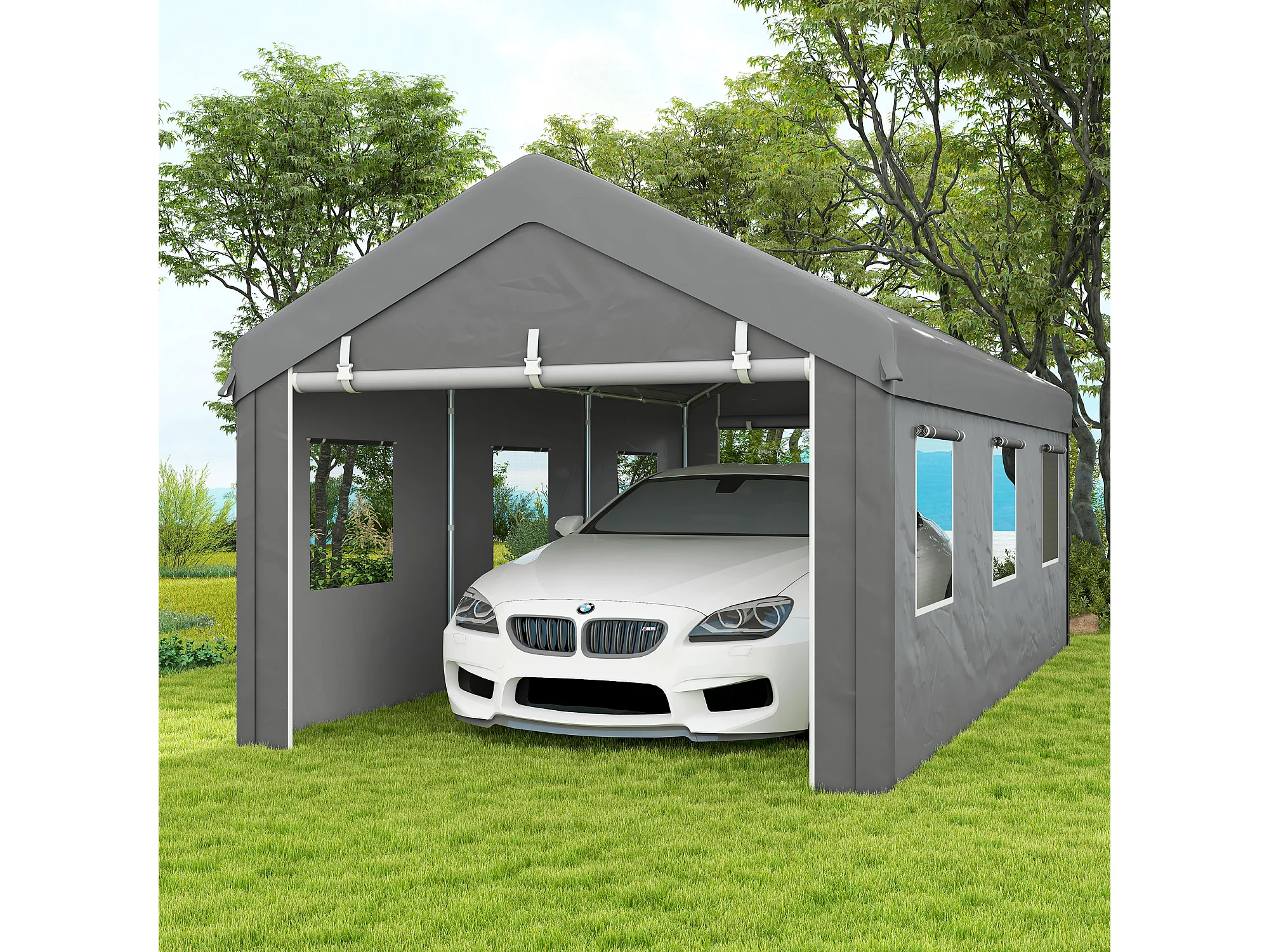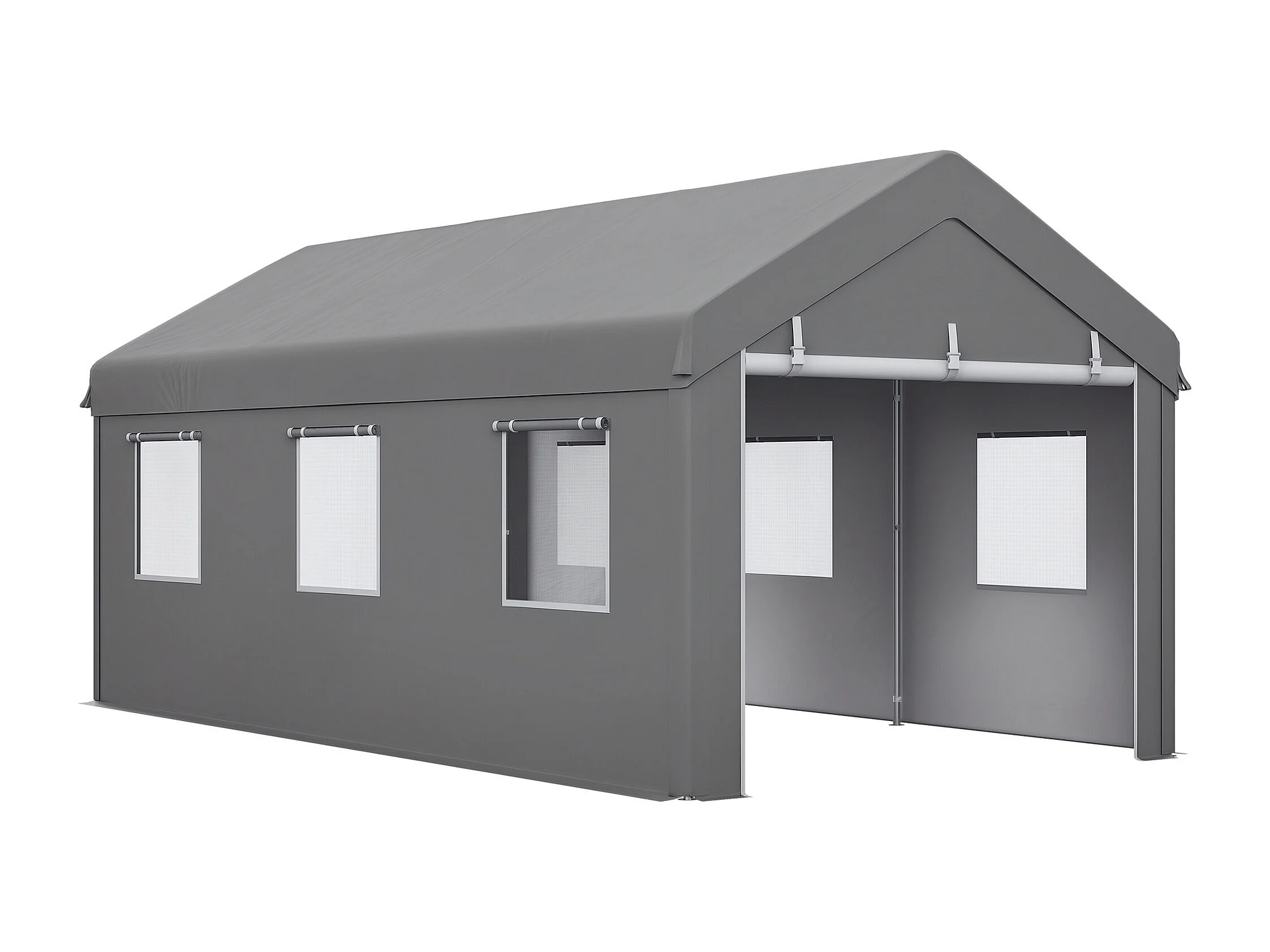 Tente garage carport dim. 6L x 2,95l x 2,78H m acier galvanisé PE haute densité 2 portes 6 fenêtres gris