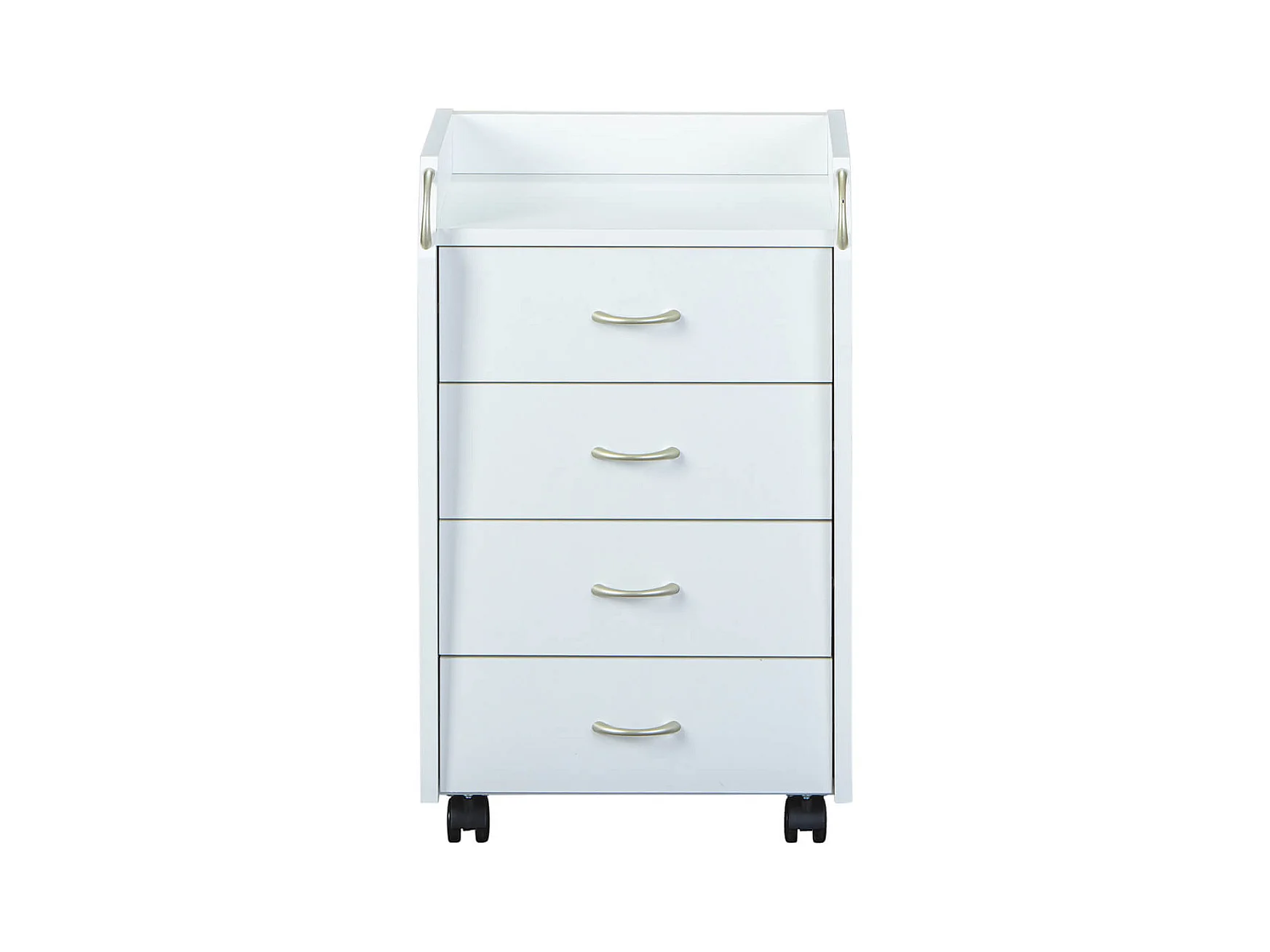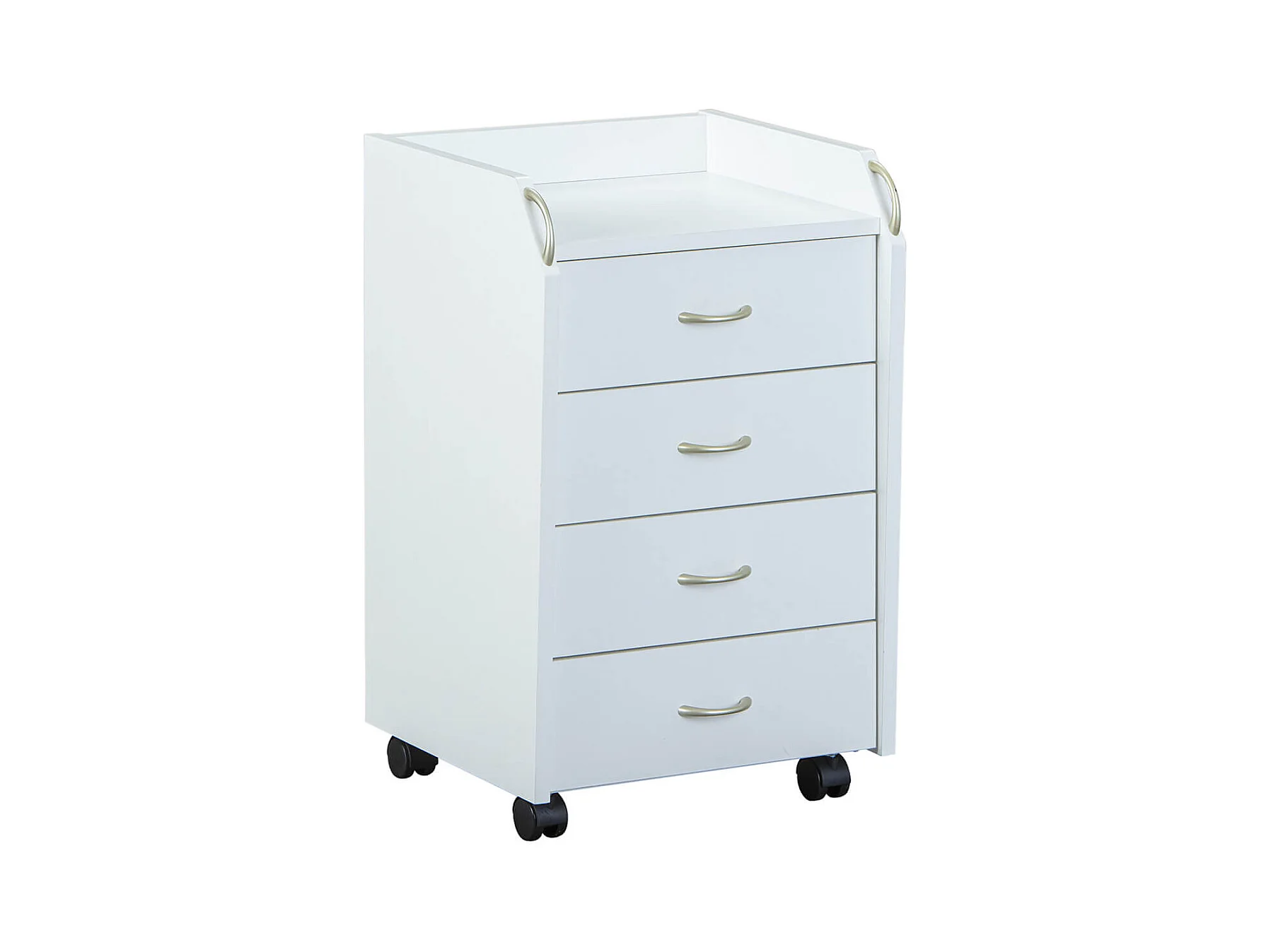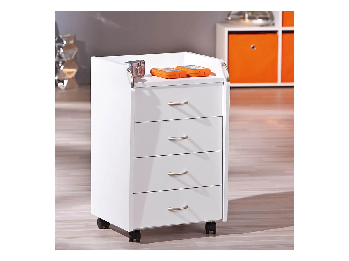 Prosar Commode à roulettes, 4 tiroirs, blanc.