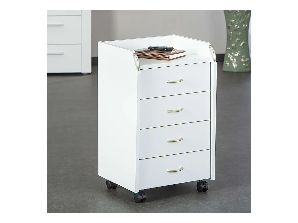 TEO - Caisson 4 Tiroirs sur Roulettes Coloris Blanc