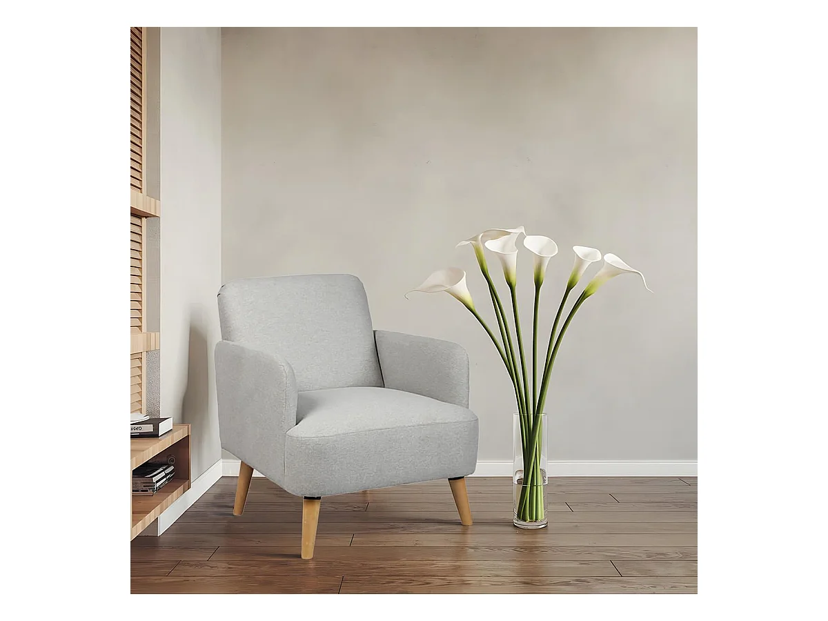TEODORE - Fauteuil Rembourré Tissu Gris Clair