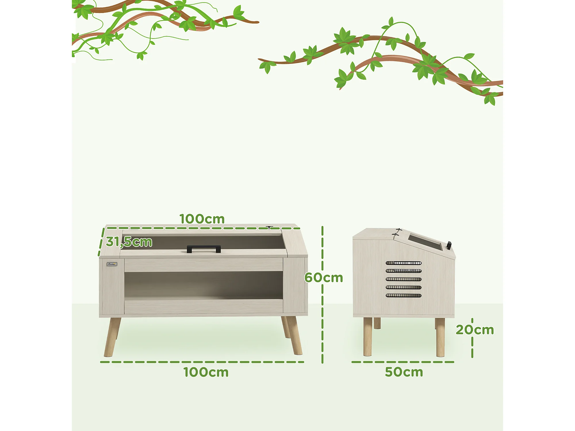 Terrarium vivarium 140L - aération latérale, fenêtres verre trempé, couvercle - bois naturel