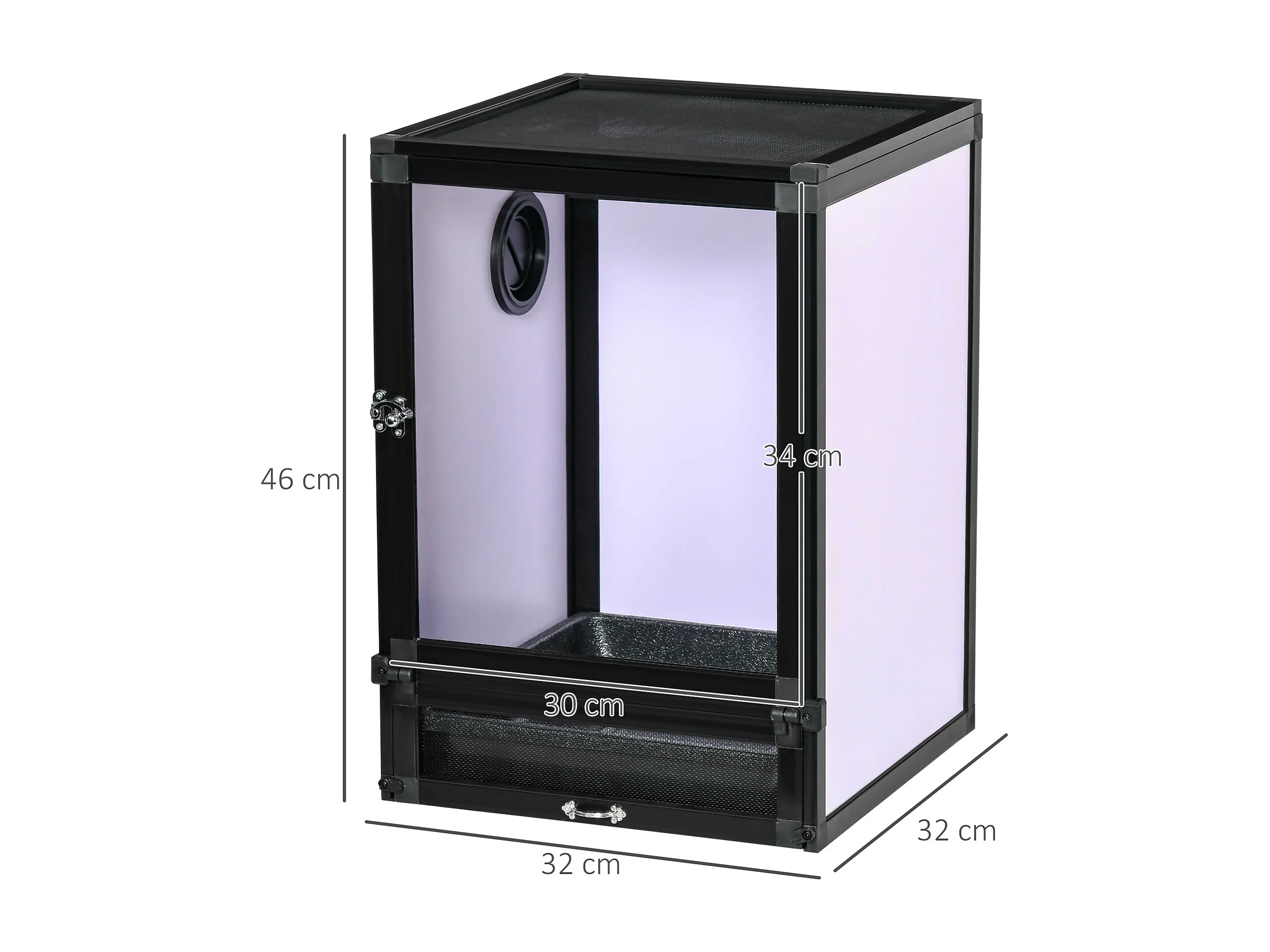 Terrarium vivarium boîte pour reptiles dim. 32L x 32l x 46H cm avec passe-câble, fond en ABS, plateau amovible noir blanc