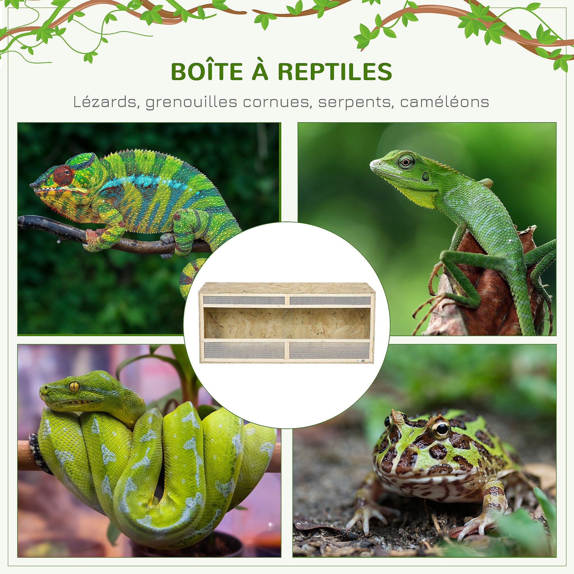 Terrarium - vivarium reptiles - 2 portes coulissantes verre trempé - parois frontales maillées - métal OSB