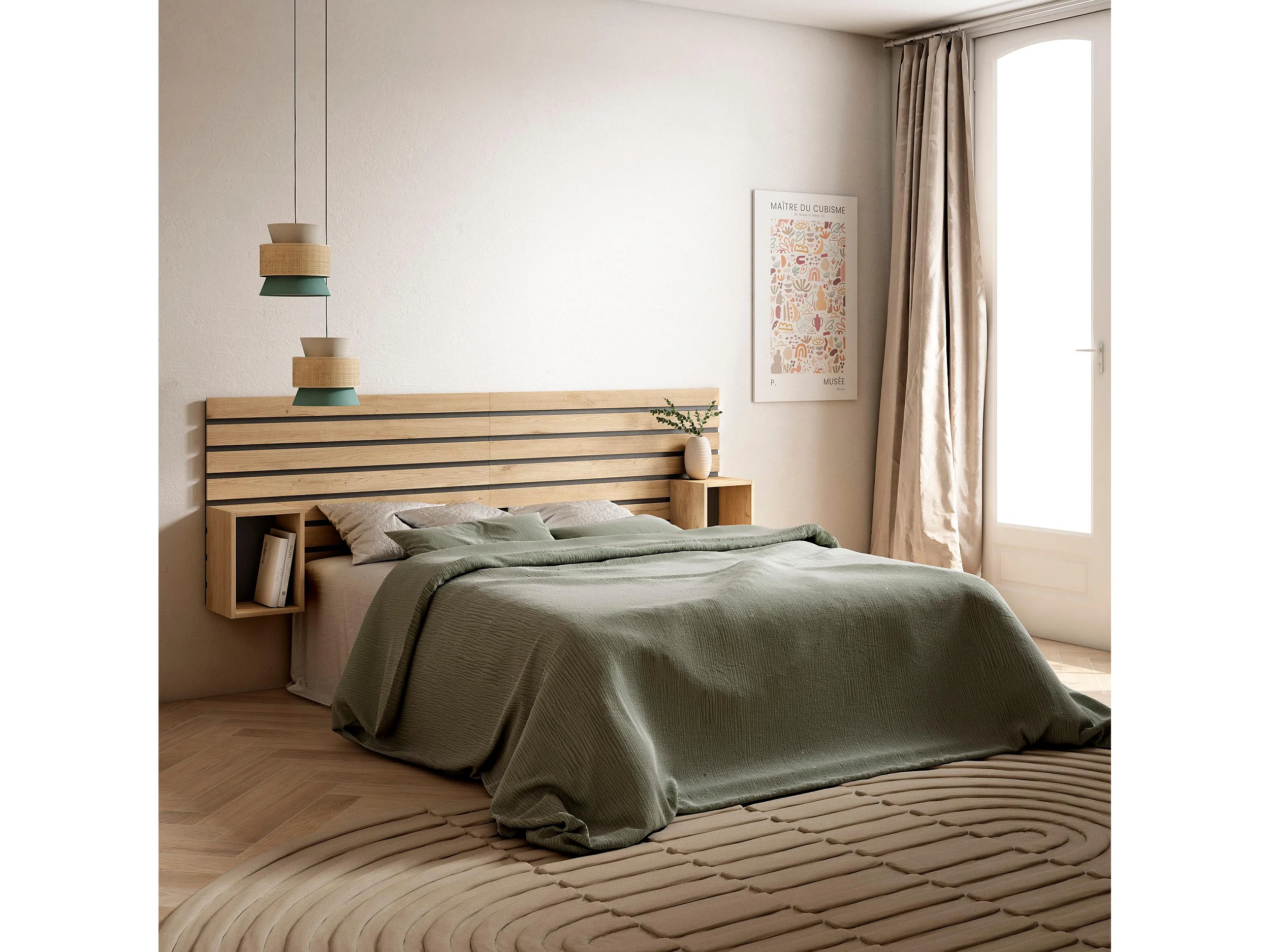 Tête de lit, 214x70x3, Lit 120,135,140,150,160cm, Panneaux Muraux, Chêne