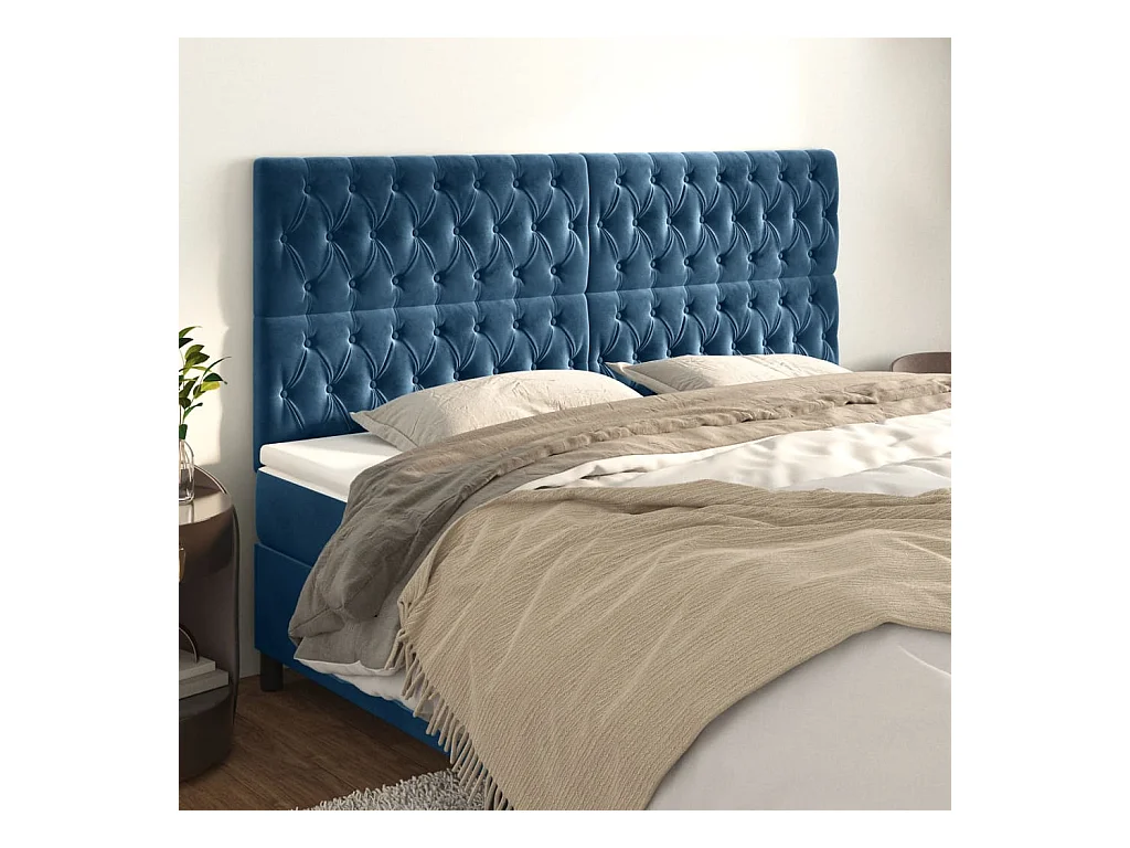 Tête de lit 4 pièces Bleu foncé 90x7x78/88 cm Velours