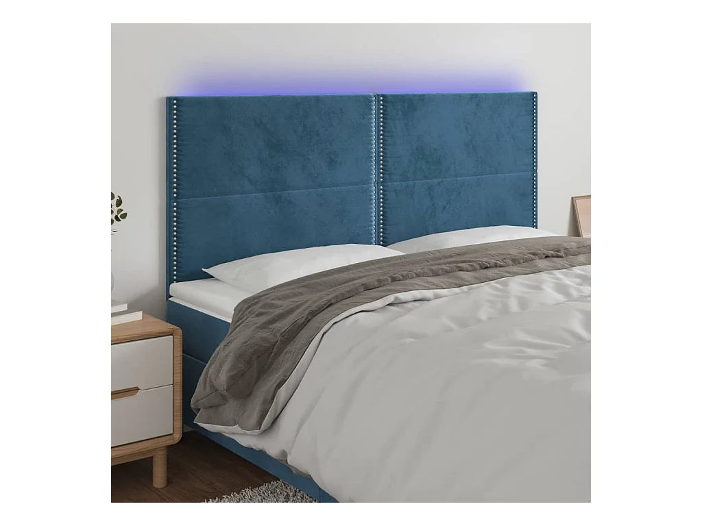 Tête de lit à LED Bleu foncé 200x5x118-128 Velours