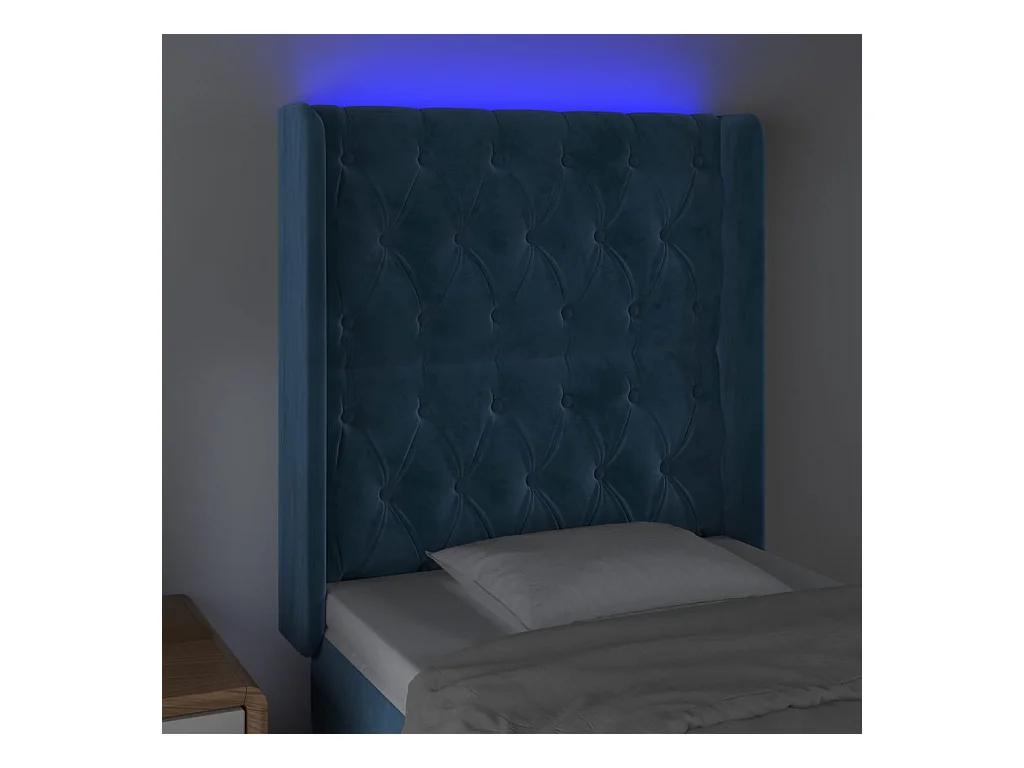 Tête de lit à LED Bleu foncé 93x16x118,128 cm Velours PEWV84675 BonneVie Meuble