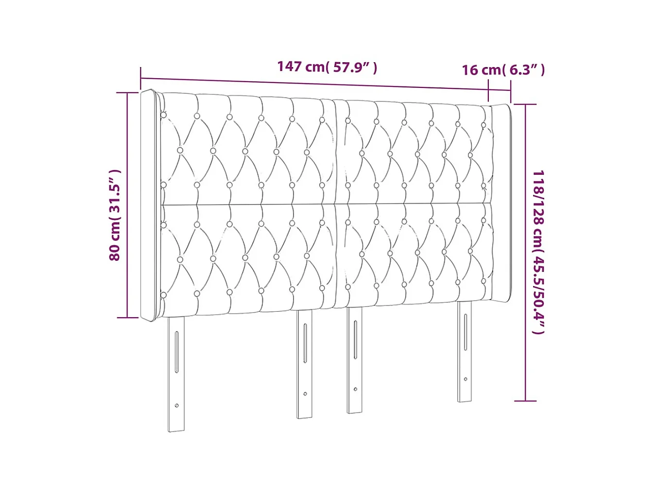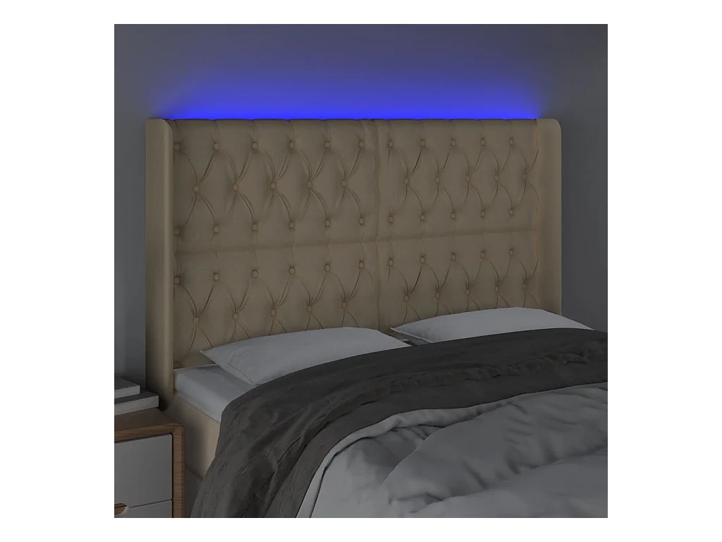 Tête de lit à LED Crème 147x16x118/128 cm Tissu