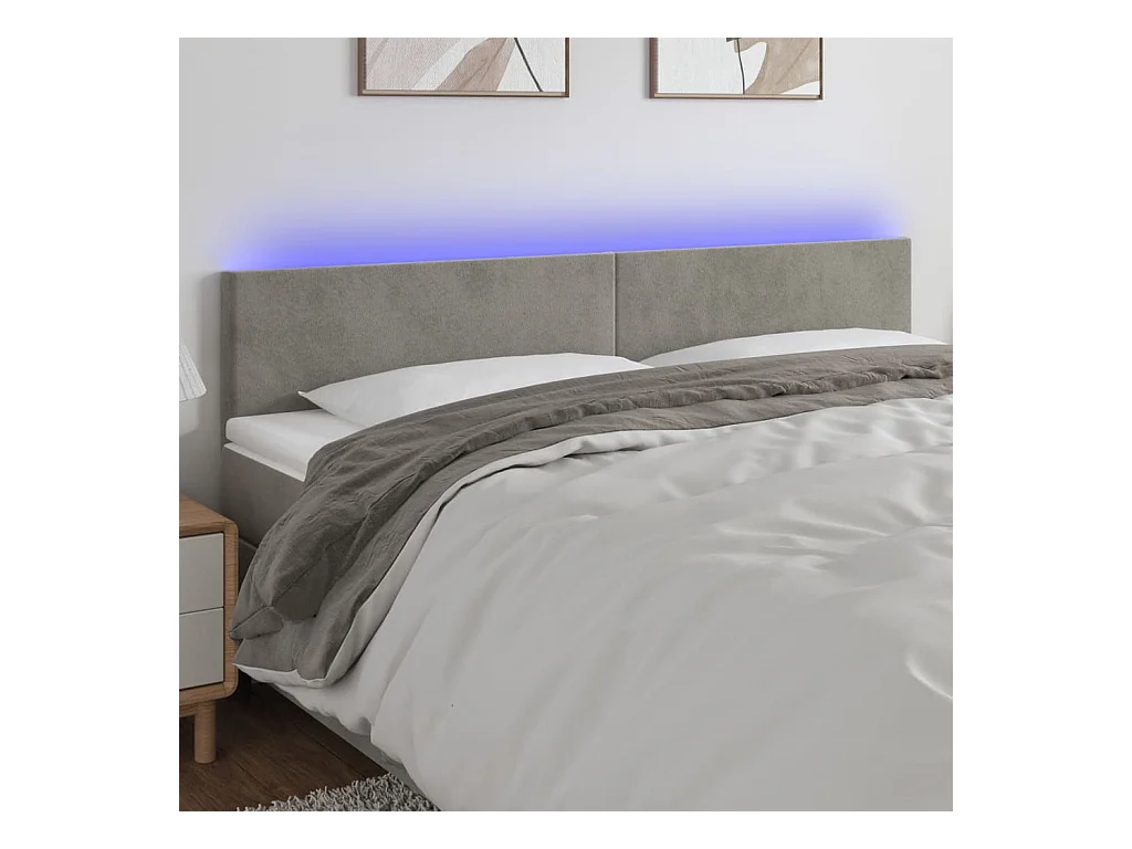 Tête de lit à LED Gris clair 160x5x78/88 cm Velours POI19297 BonneVie Meuble