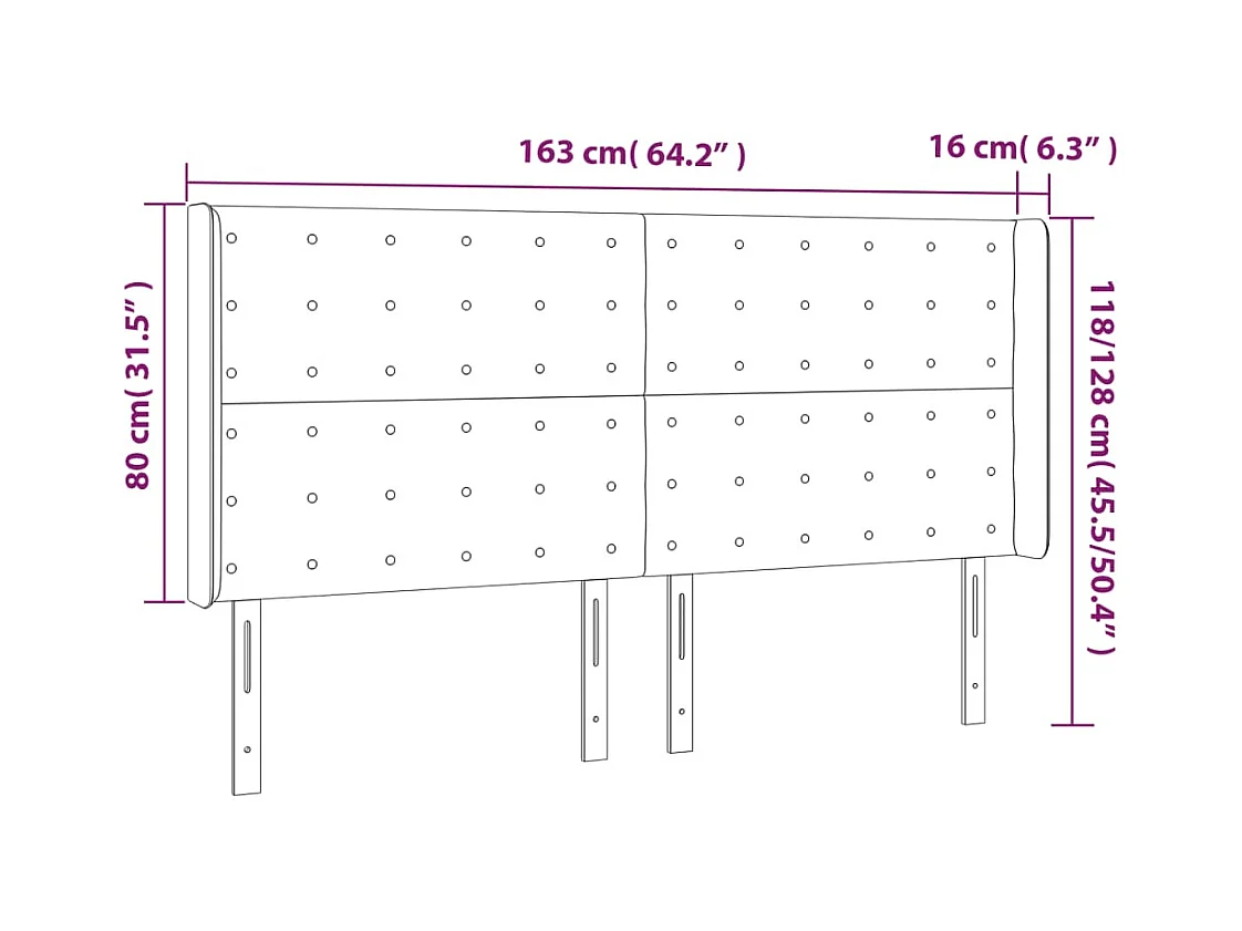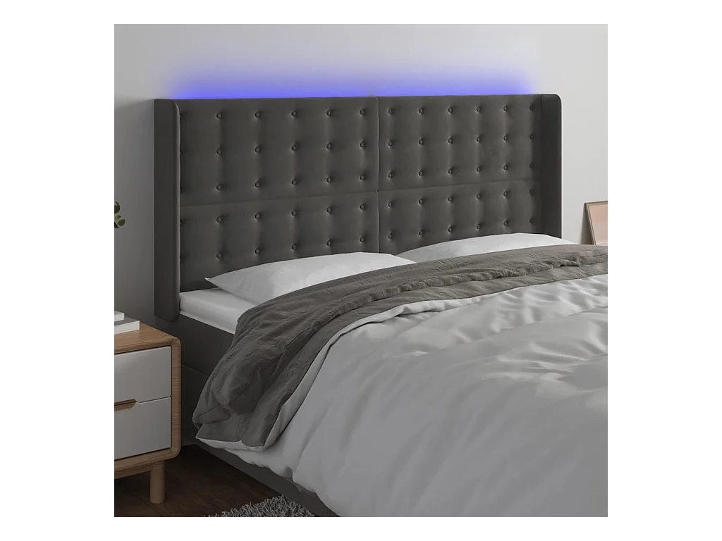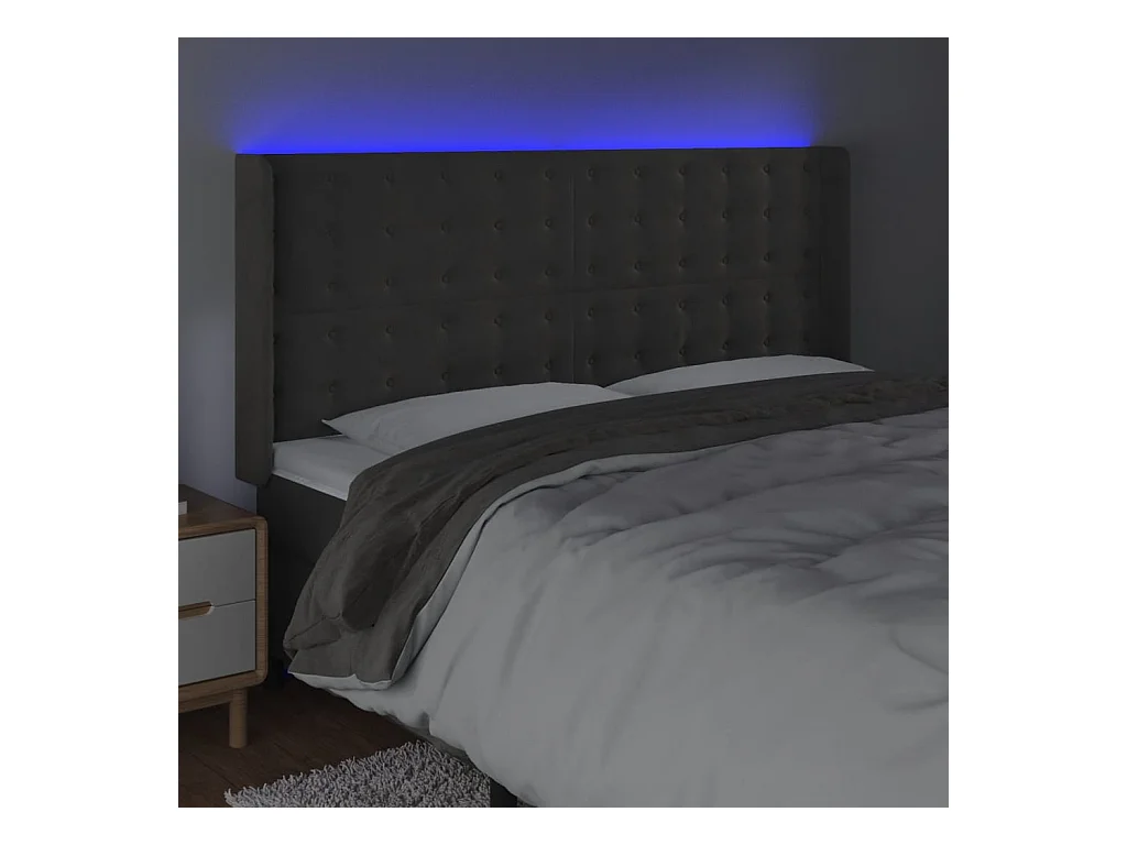Tête de lit à LED Gris foncé 163x16x118/128 cm Velours