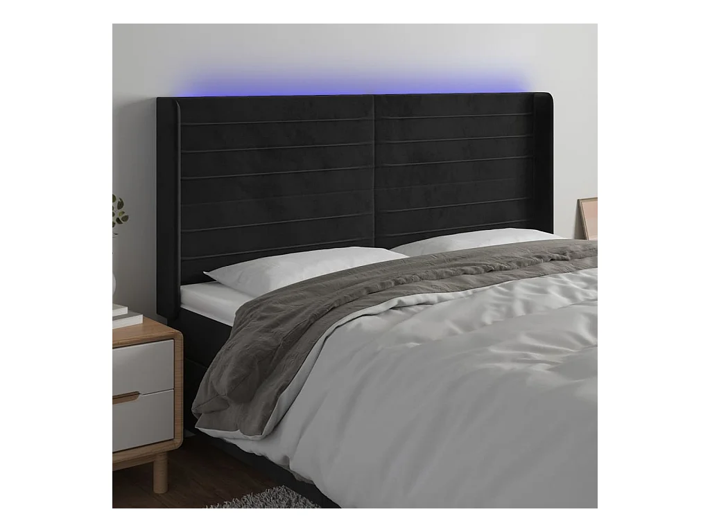 Tête de lit à LED Noir 183x16x118-128 Velours