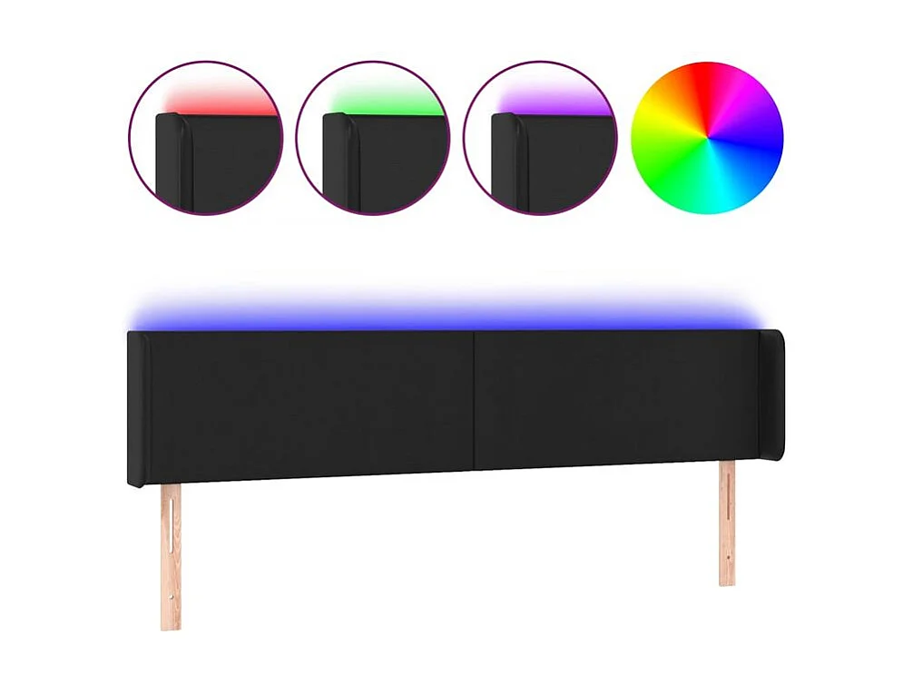 Tête de lit à LED Noir 183x16x78-88 Similicuir