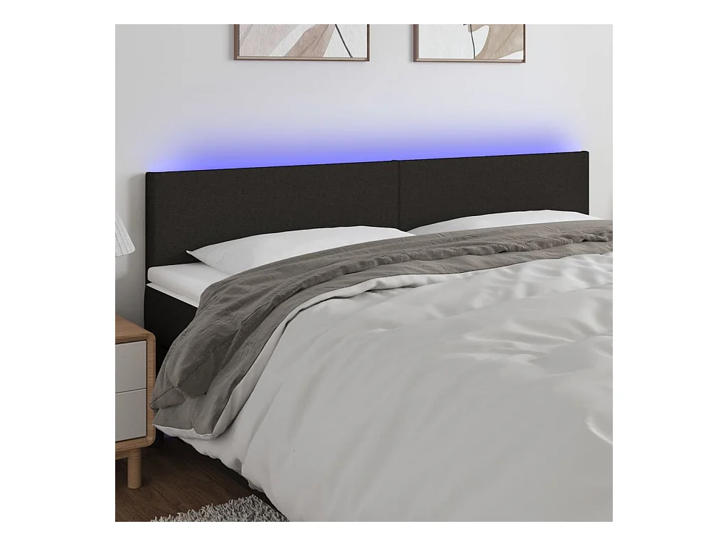 Tête de lit à LED Noir 200x7x78/88 cm Tissu