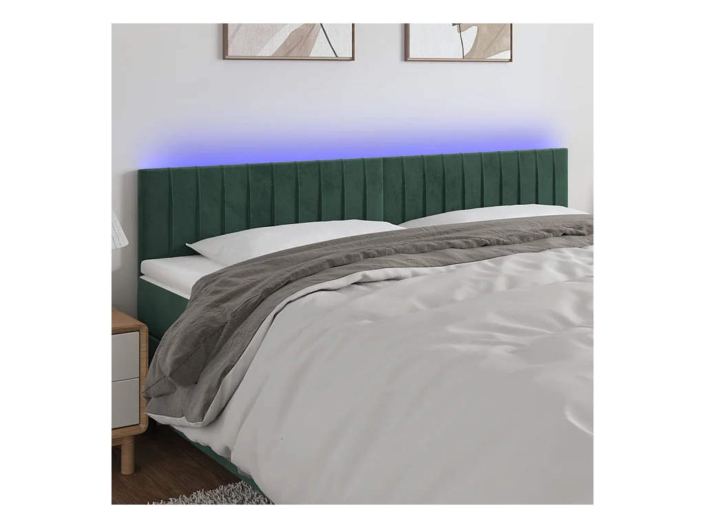 Tête de lit à LED Vert foncé 203x16x78/88 cm Velours FR916660