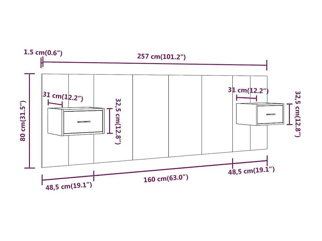 Tête de lit accessoire effet bois marron 160 x 1.5 x 80 cm TDL0205843