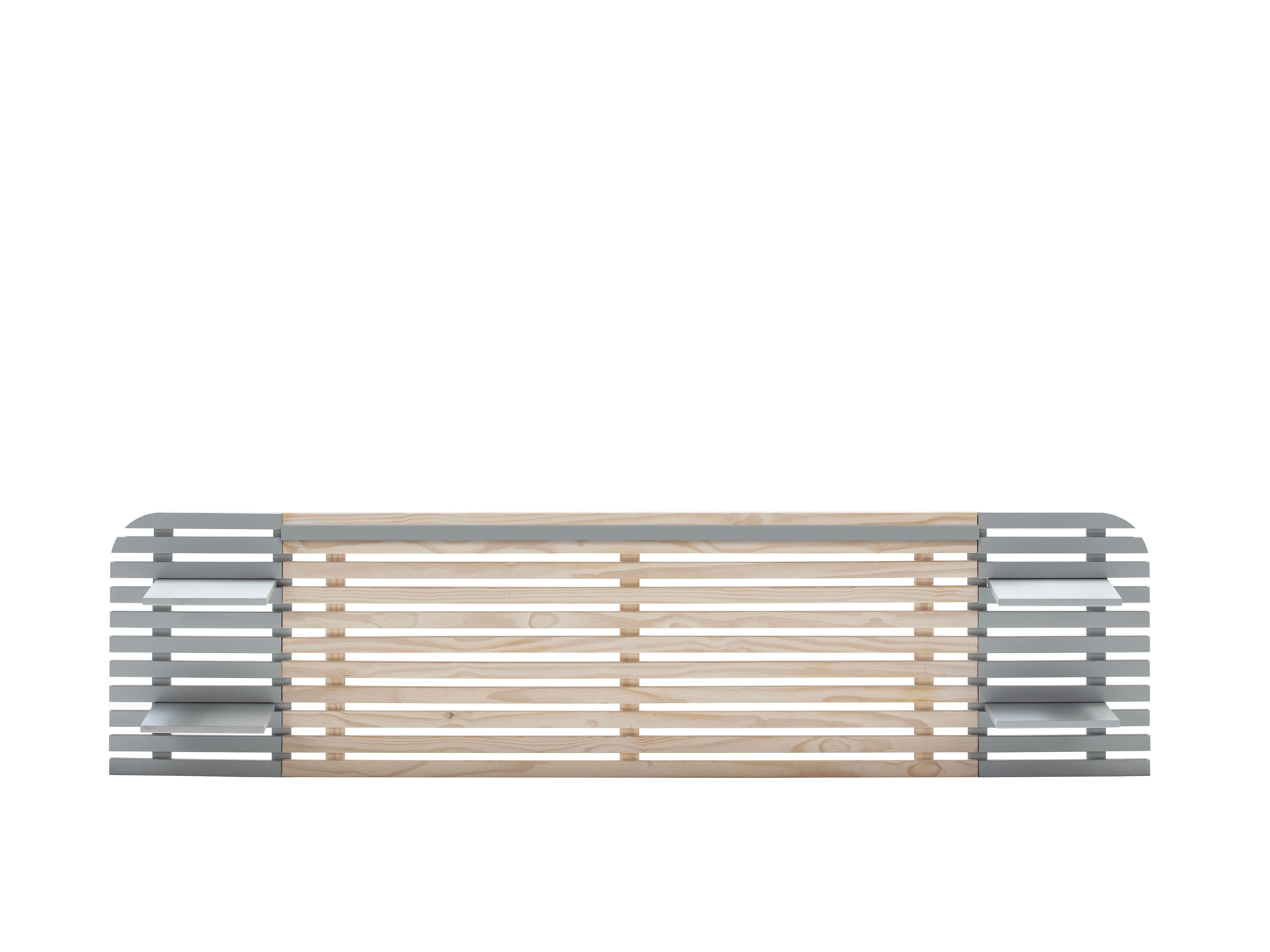 Tête de lit adulte en lattes de bois blanchi / gris 240 cm avec chevets intégrés - Scala