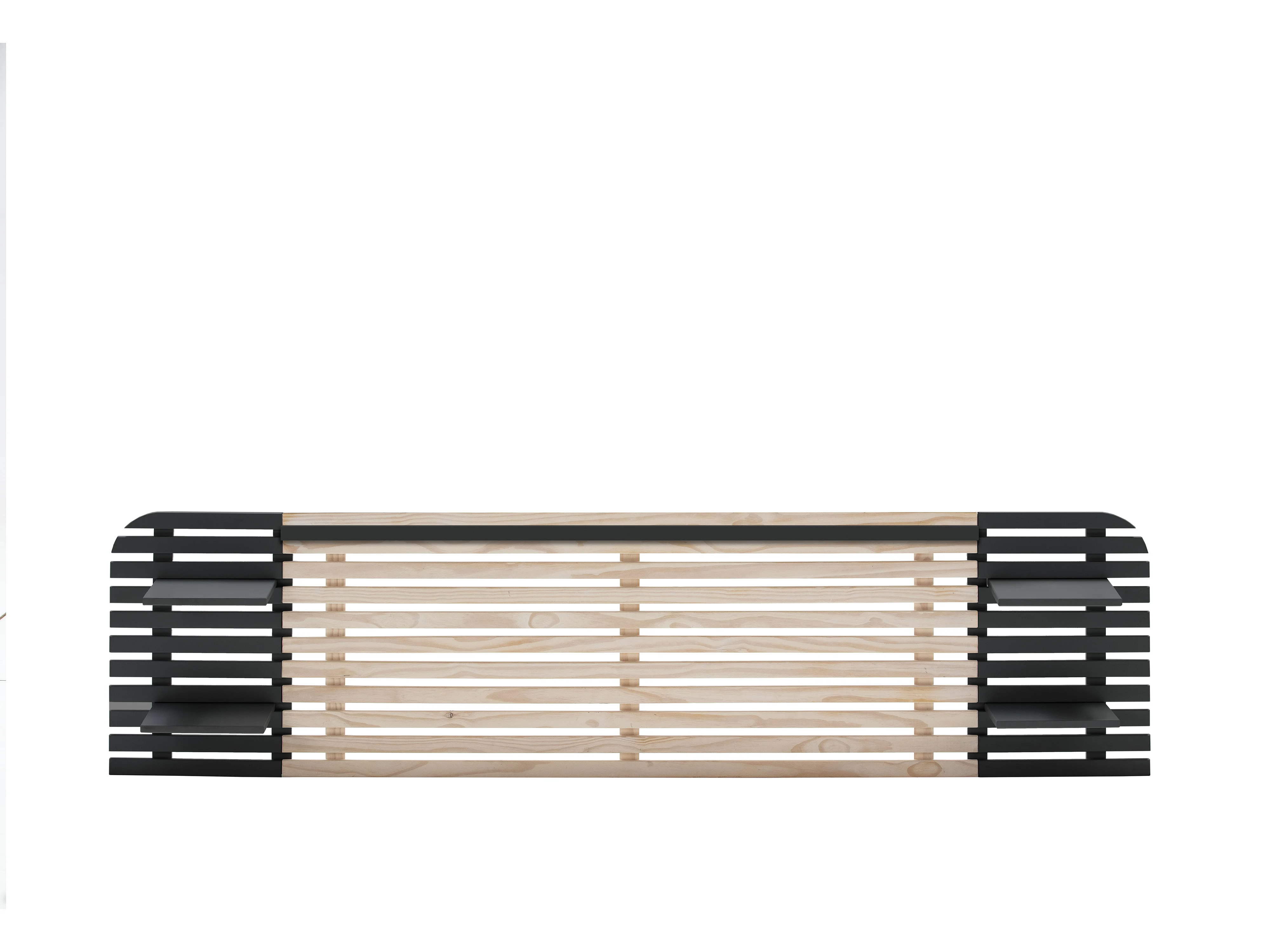 Tête de lit adulte en lattes de bois blanchi / noir 240 cm avec chevets intégrés - Scala