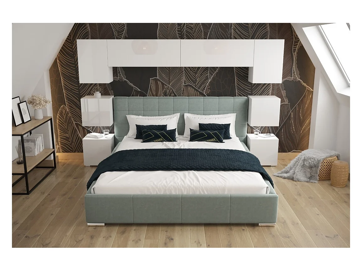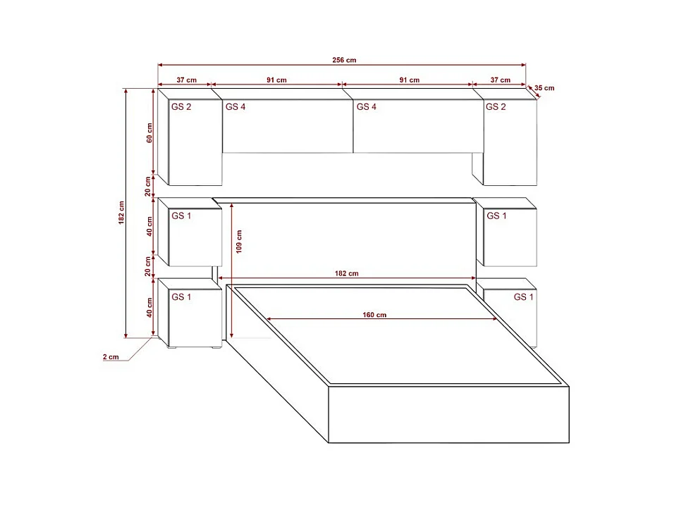Tête de lit avec rangement Armoire - pont de lit PANAMA 13/HG/W/1-1A blanc/blanc brillant 256x182x35cm