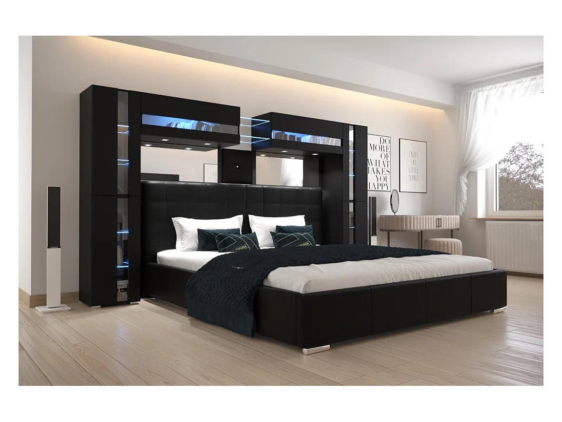 Tête de lit avec rangement Armoire - pont de lit PANAMA 14/HG/B/1-1C noir/noir brillant 290x184x35cm