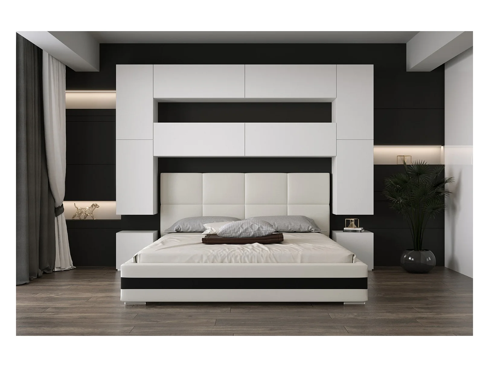 Tête de lit avec rangement Armoire - pont de lit PANAMA 4/M/W/3-1C blanc 280x223x35cm