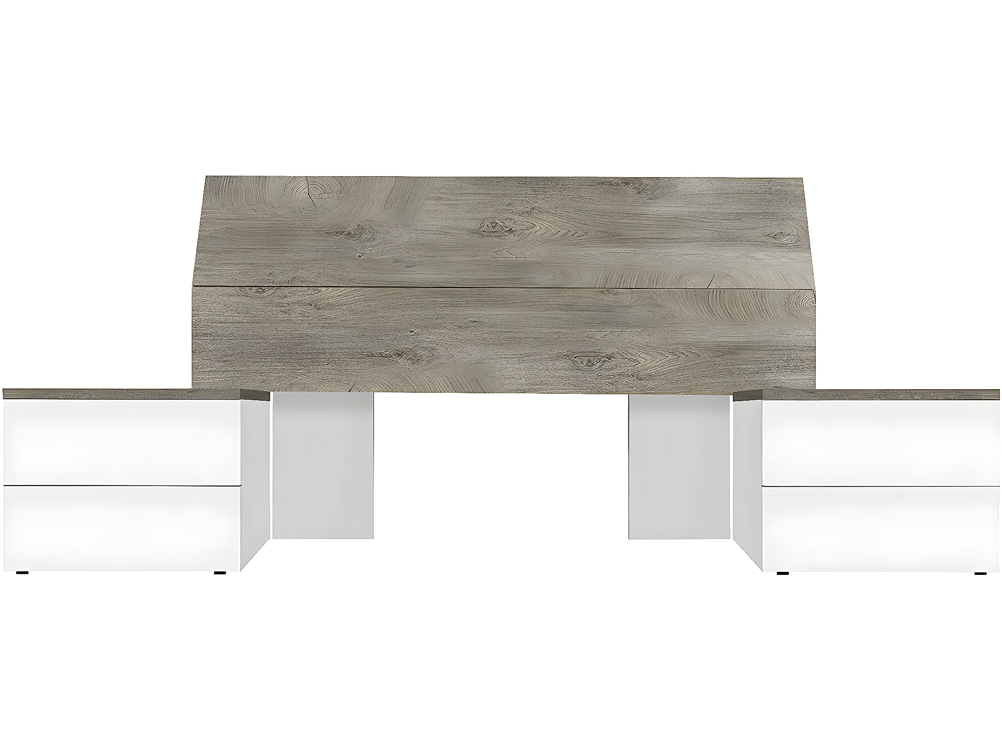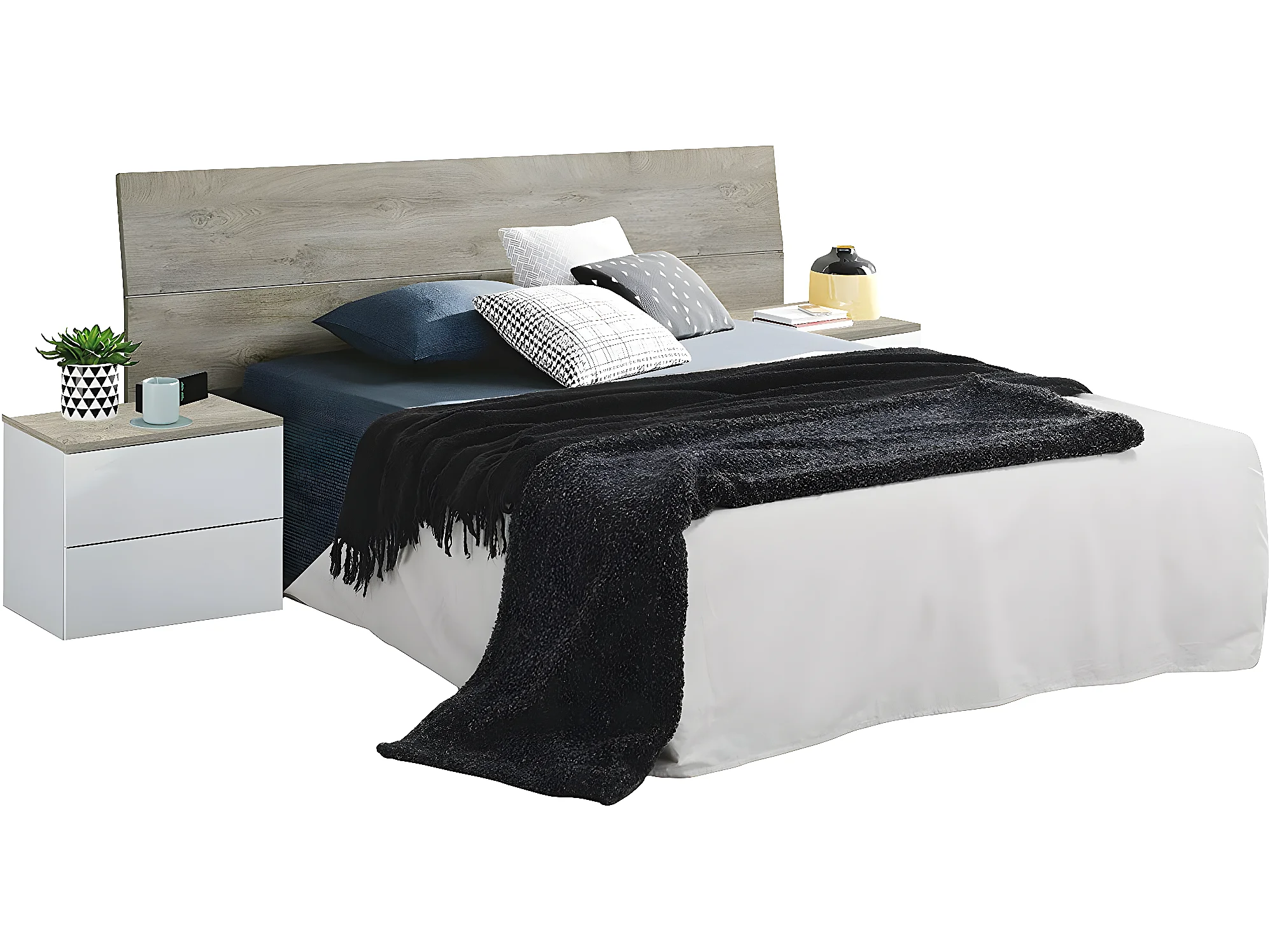 Tête de Lit avec 2 Tables de Chevet coloris blanc artic / chêne à nœuds alaska - Hauteur 96 x Longueur 256 x Profondeur 34 cm