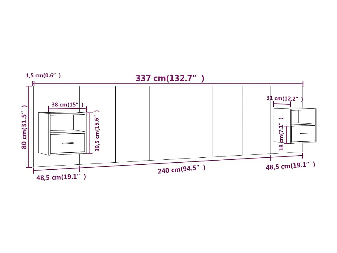 Tête de lit avec armoires Chêne sonoma Bois d'ingénierie