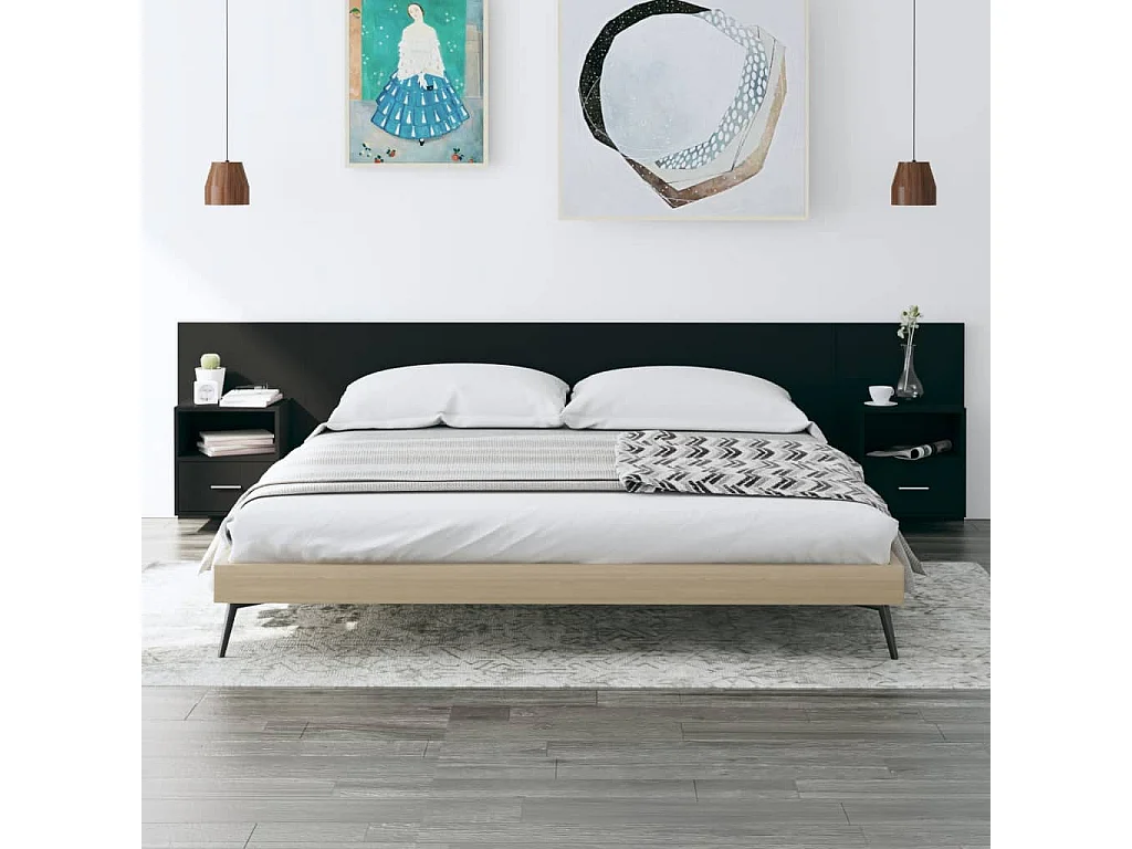Tête de lit avec armoires Noir Bois d’ingénierie POI77293 BonneVie Meuble