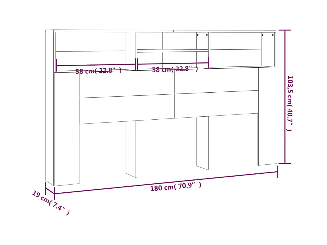 Armoire tête de lit avec LED blanc 180x17x102 cm