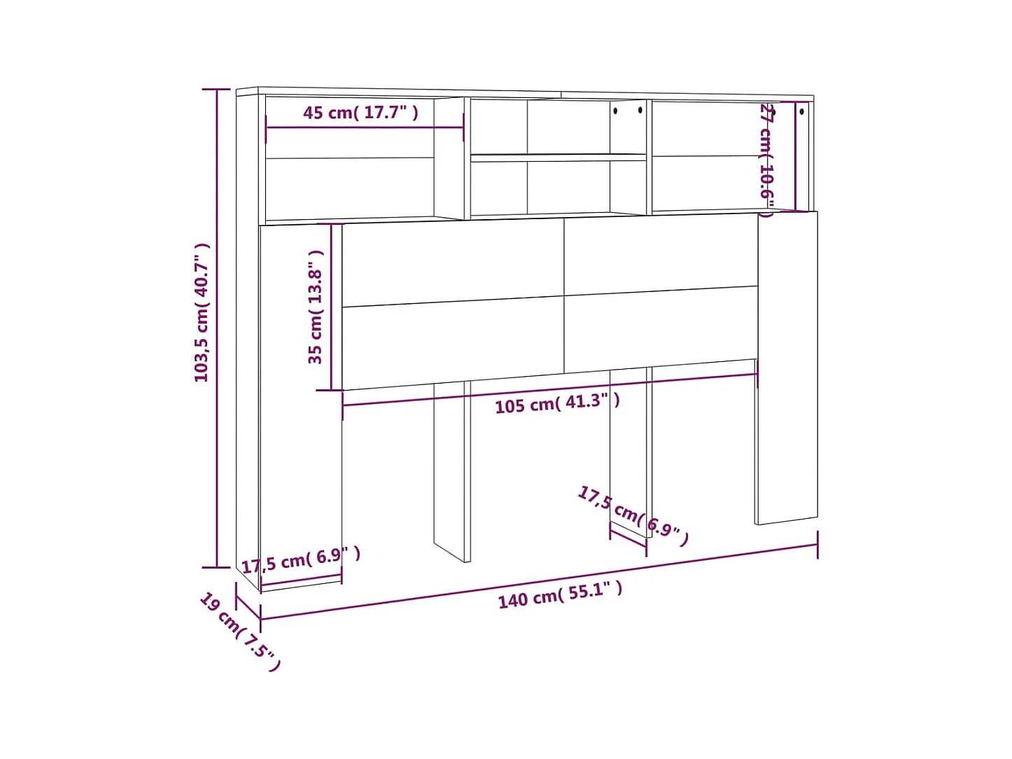 Tête de lit et pont de lit avec rangement