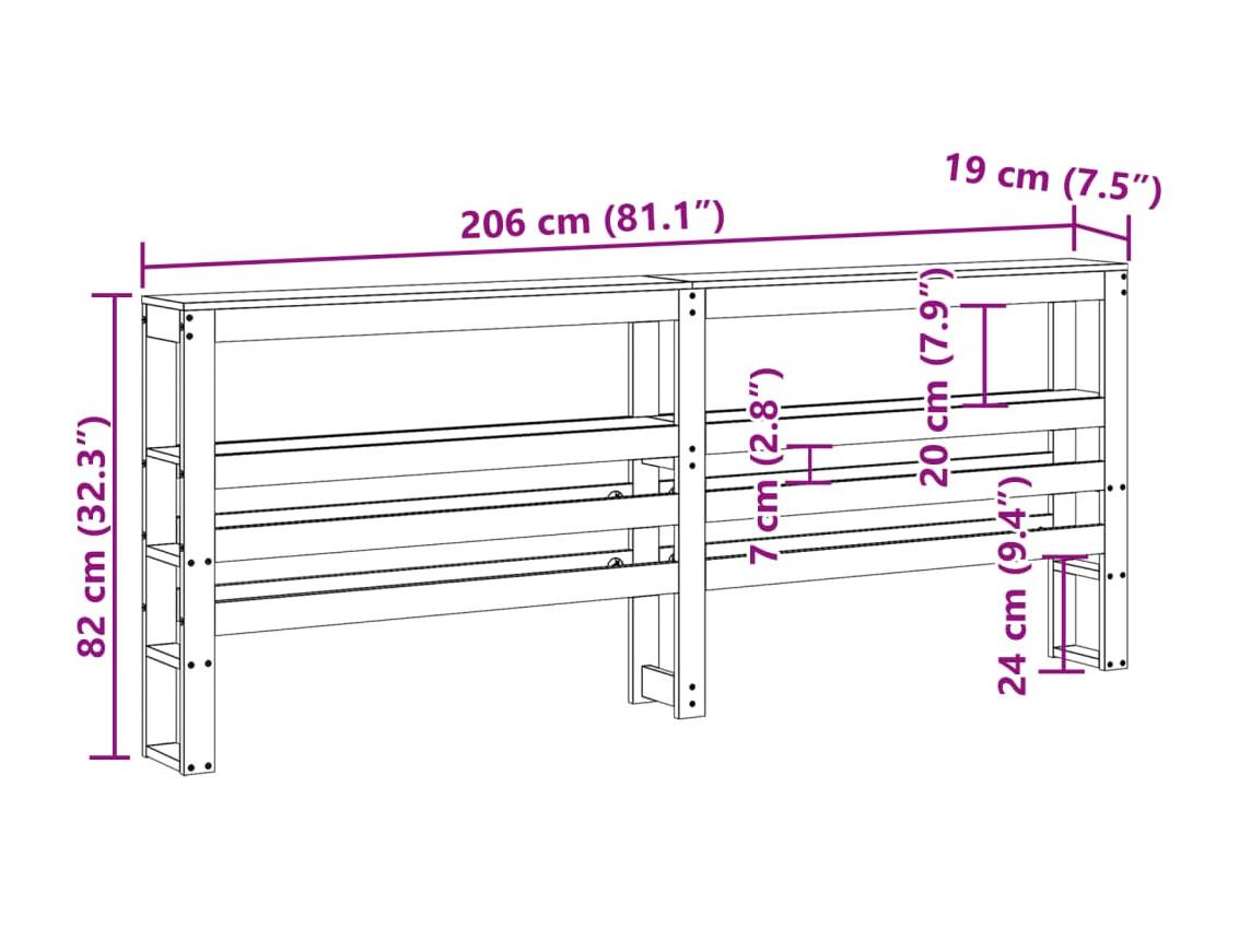 Tête de lit avec étagères marron cire 200 cm bois massif de pin