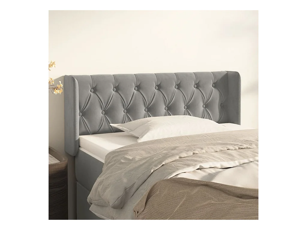 Tête de lit avec oreilles Gris clair 103x16x78/88 cm Velours POI84295 BonneVie Meuble