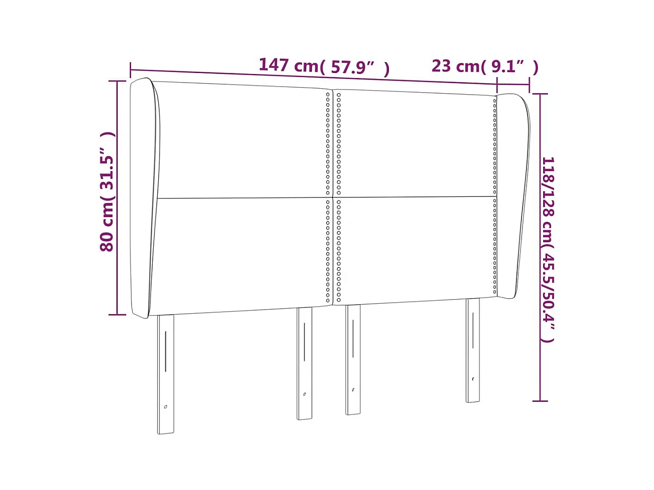 Tête de lit avec oreilles Vert foncé 147x23x118/128 cm Velours