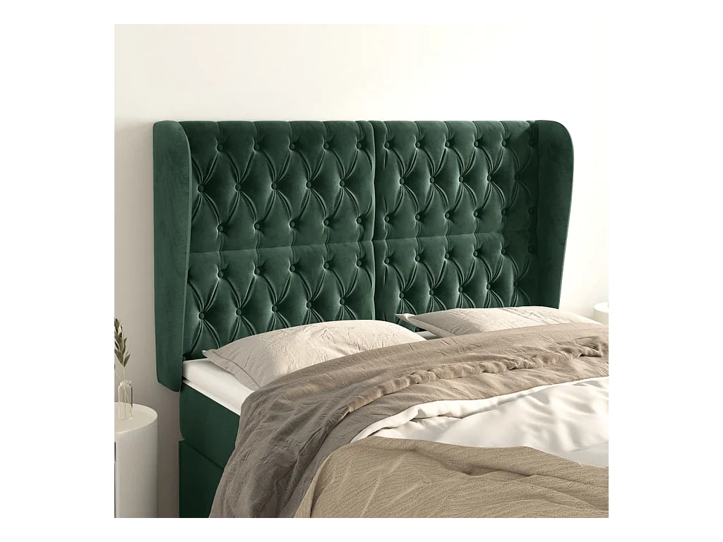 Tête de lit avec oreilles Vert foncé 147x23x118-128 Velours