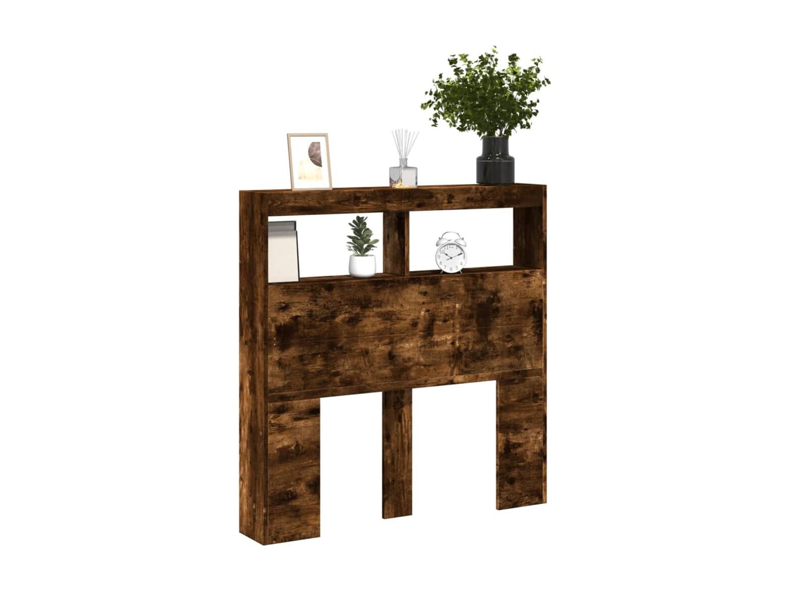 Tête de Lit avec rangement | Armoire de tête de lit Chêne fumé 100x18,5x102,5 cm