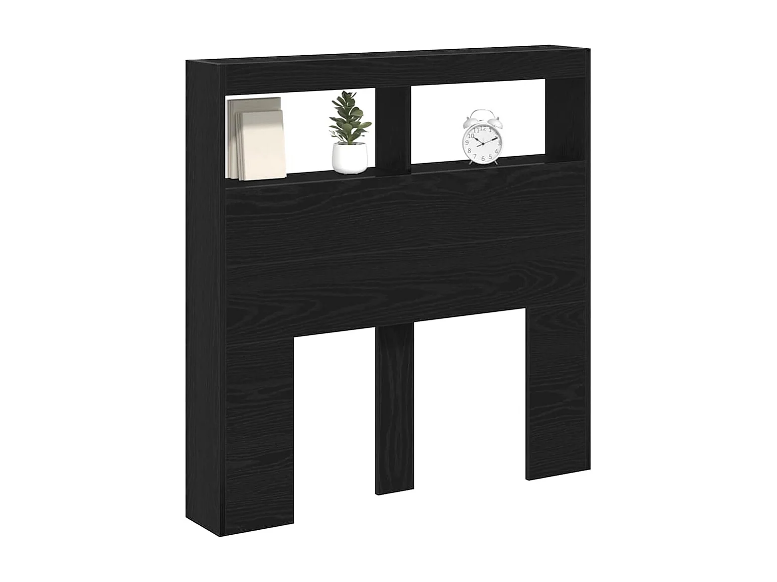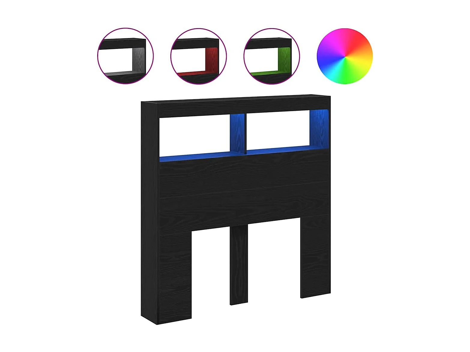 Tête de Lit avec rangement | Armoire de tête de lit avec LED chêne noir 100x17x102 cm