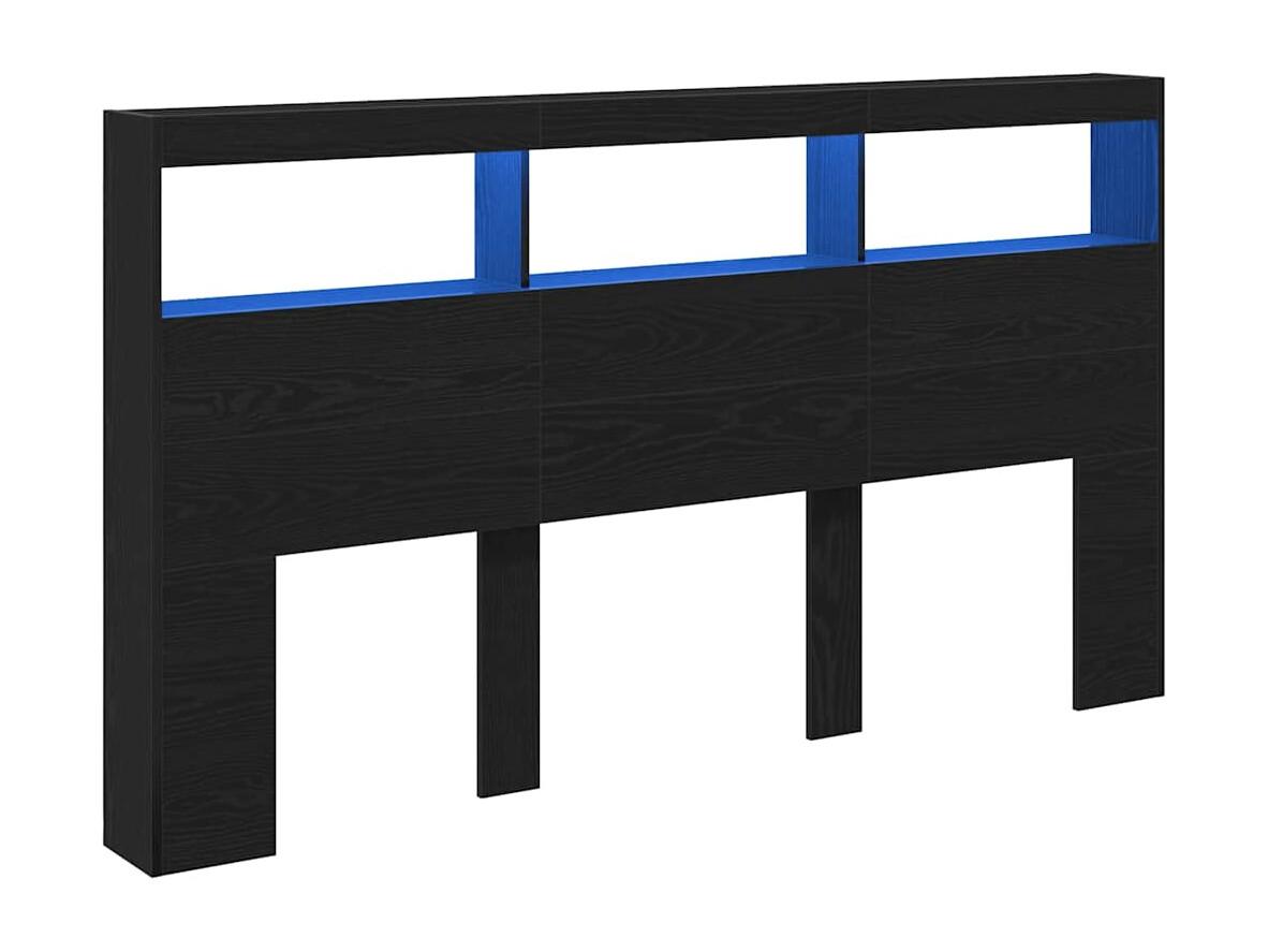 Tête de Lit avec rangement | Armoire de tête de lit avec LED chêne noir 180x17x102 cm