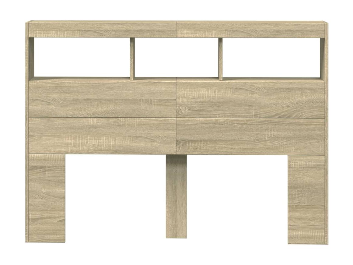 Tête de Lit avec rangement | Armoire de tête de lit avec LED chêne sonoma 140x17x102 cm