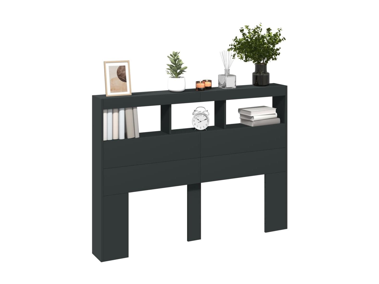 Tête de Lit avec rangement | Armoire de tête de lit avec LED noir 140x17x102 cm