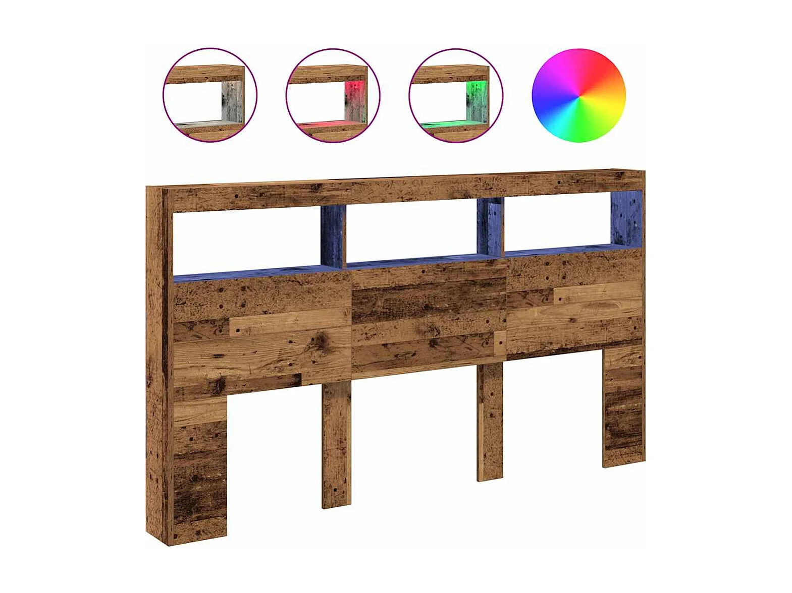 Tête de Lit avec rangement | Armoire de tête de lit avec LED vieux bois 180x17x102 cm