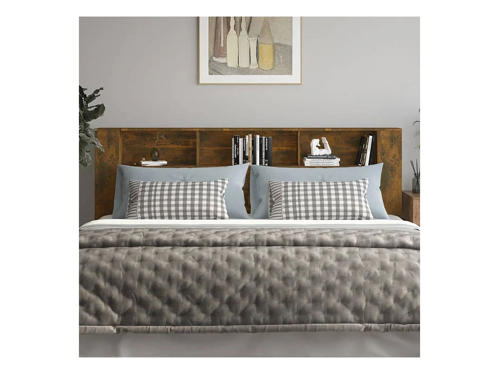 Tête de Lit avec rangement | Armoire de tête de lit Chêne fumé 180x18,5x104,5 cm