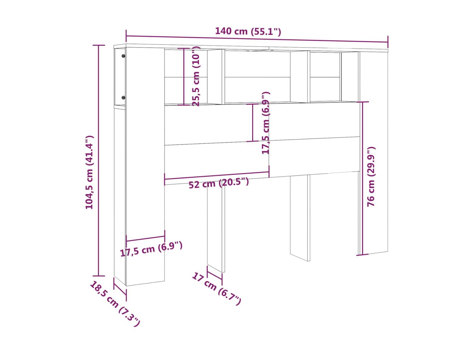 Tête de Lit avec rangement | Armoire de tête de lit Chêne sonoma 140x18,5x104,5 cm