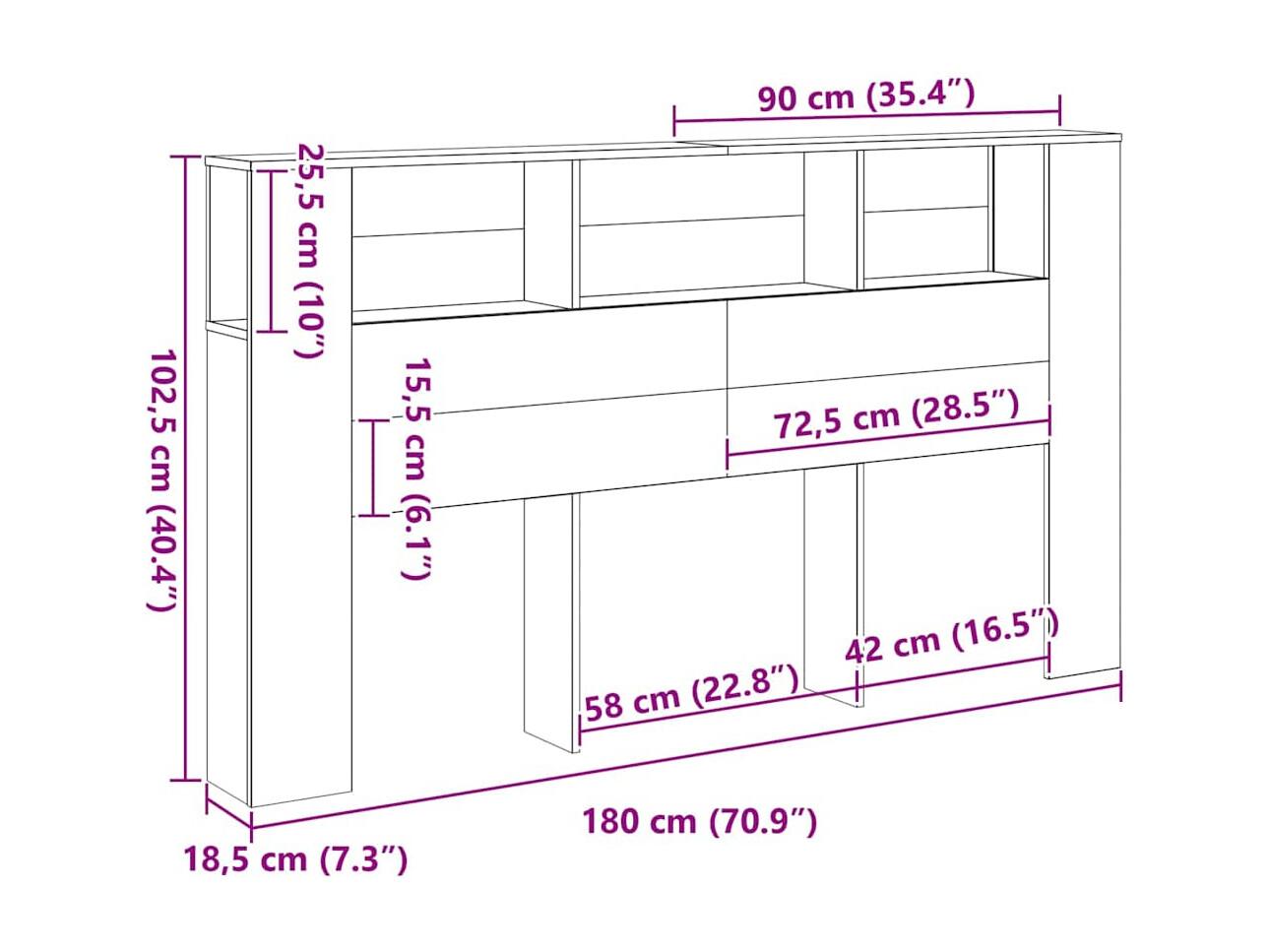 Tête de Lit avec rangement | Armoire de tête de lit en chêne noir - 180x18.5x102.5 cm