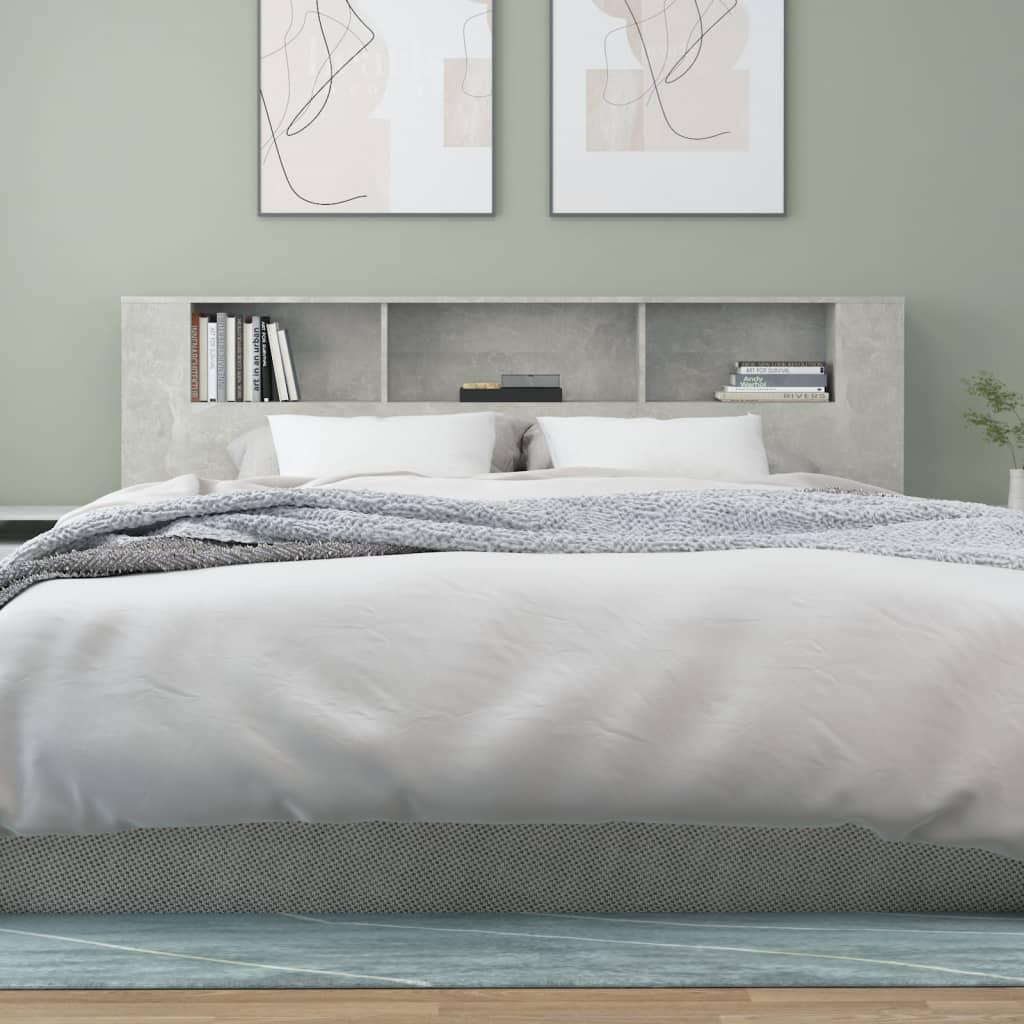 Tête de Lit avec rangement | Armoire de tête de lit avec LED gris béton 180x17x102 cm